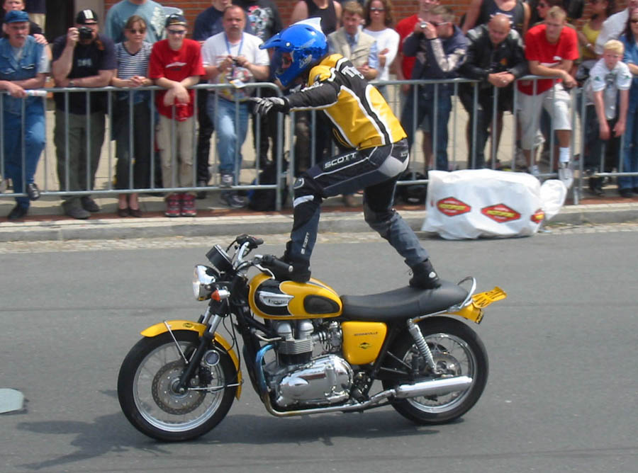 Four til Speed Triple. Filmen var fra 2003 hvor han kørdte sorte cykler. I år kører han kun gule cykler.