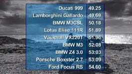 fra det engelske tvprogrammet "Fifth Gear" fra 25 oktober 2004. De prøver at afgøre
