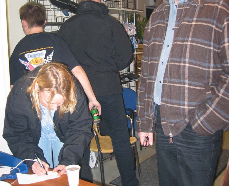 og Mogens Haugaard der vandt hver sin Triumph-pose men T-shirt og andet småt og godt.