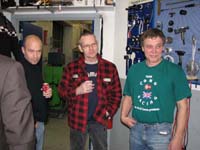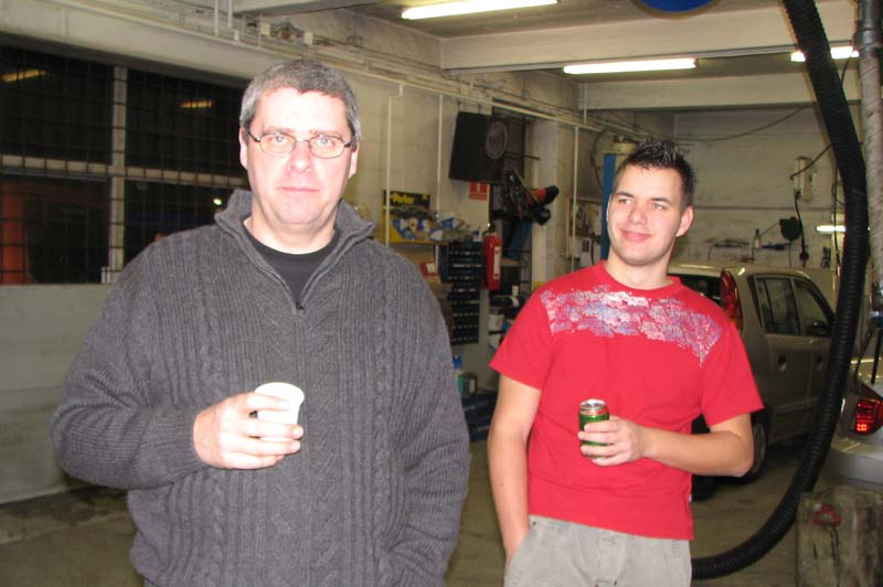 Der er hygge, pizza, øl, vand, snak og MotoGP på storskærm. Vores to Seeley G50 kørere