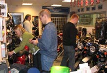 halvdelen der kiggede på motorcykler og snakkede to hjul. Og nogle skiftede mellem