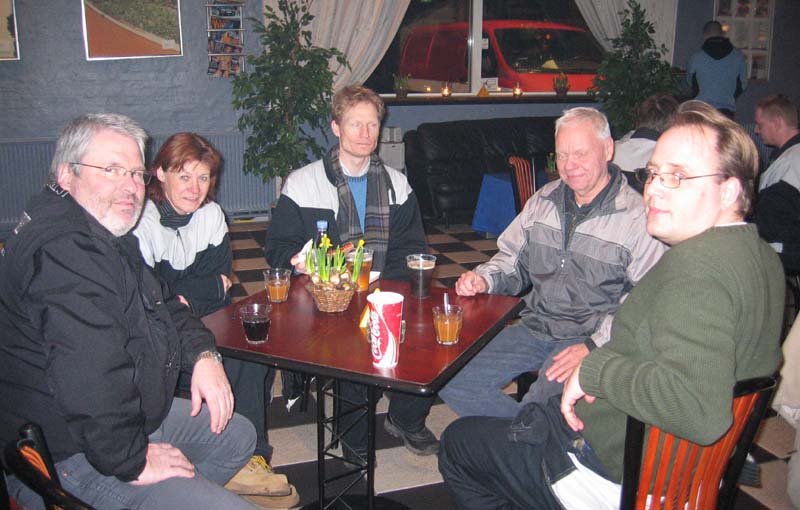 Vi mødte op halv syv og startede med lidt drikke. Enkelte af os var sultne og vi fik