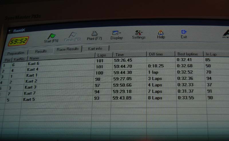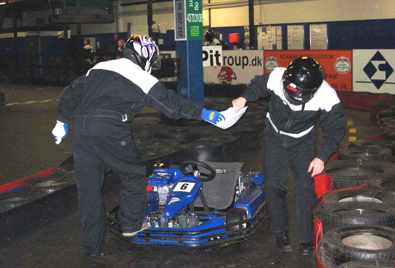 Hver gocart var udstyret med radiosender så vi ku følge med i stillingen, tid gået,