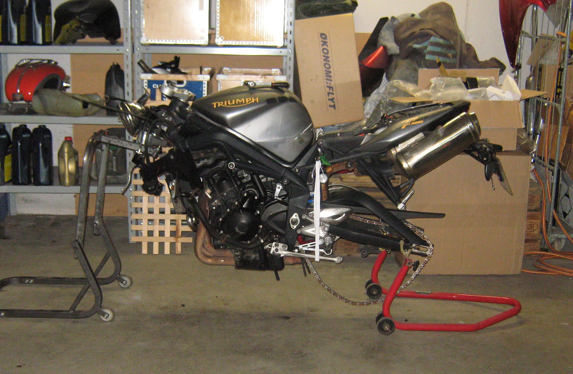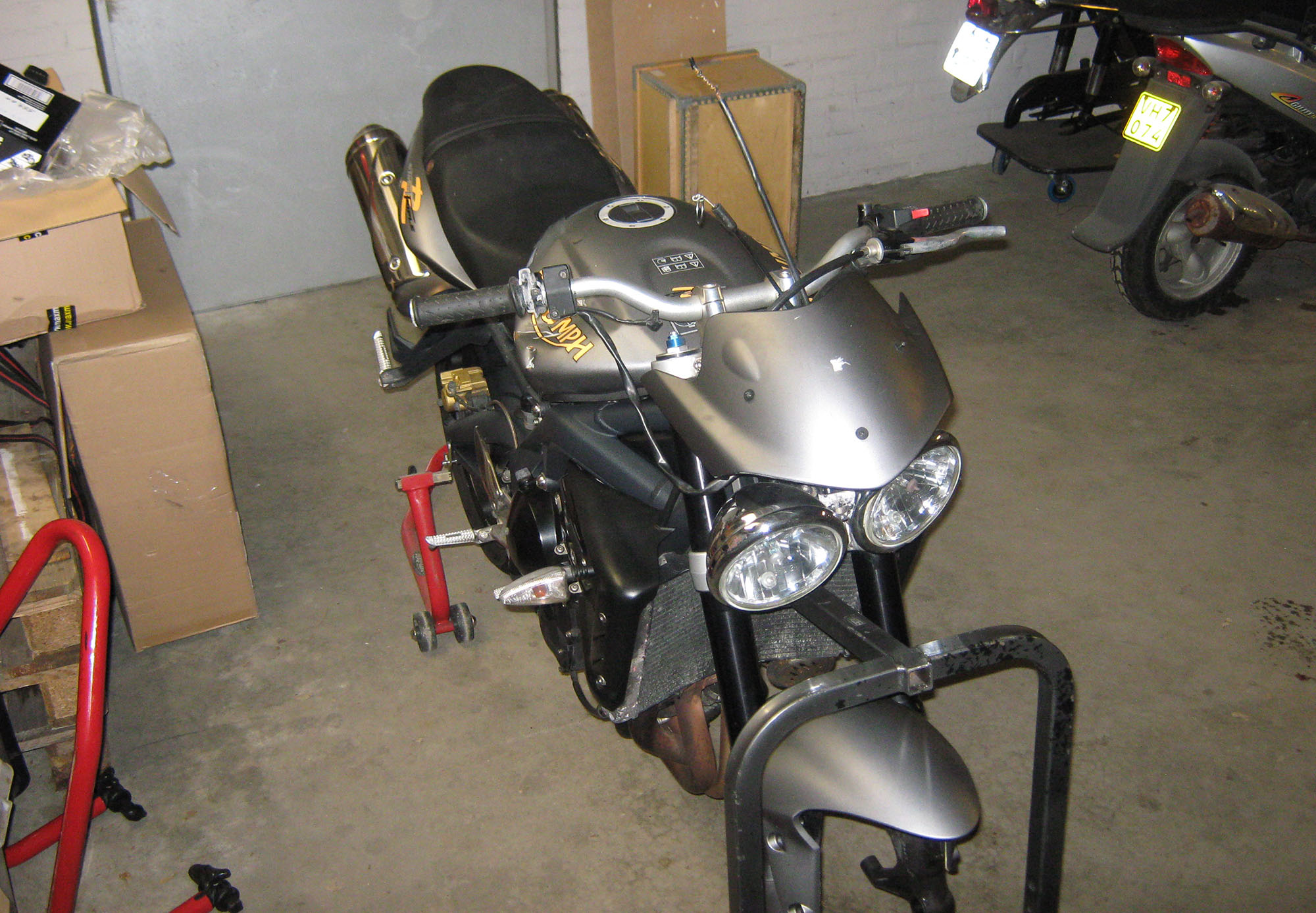 Tænkte på en lille dejlig Street Triple R, men de er lidt dyre. Så fandt en lidt skadet
