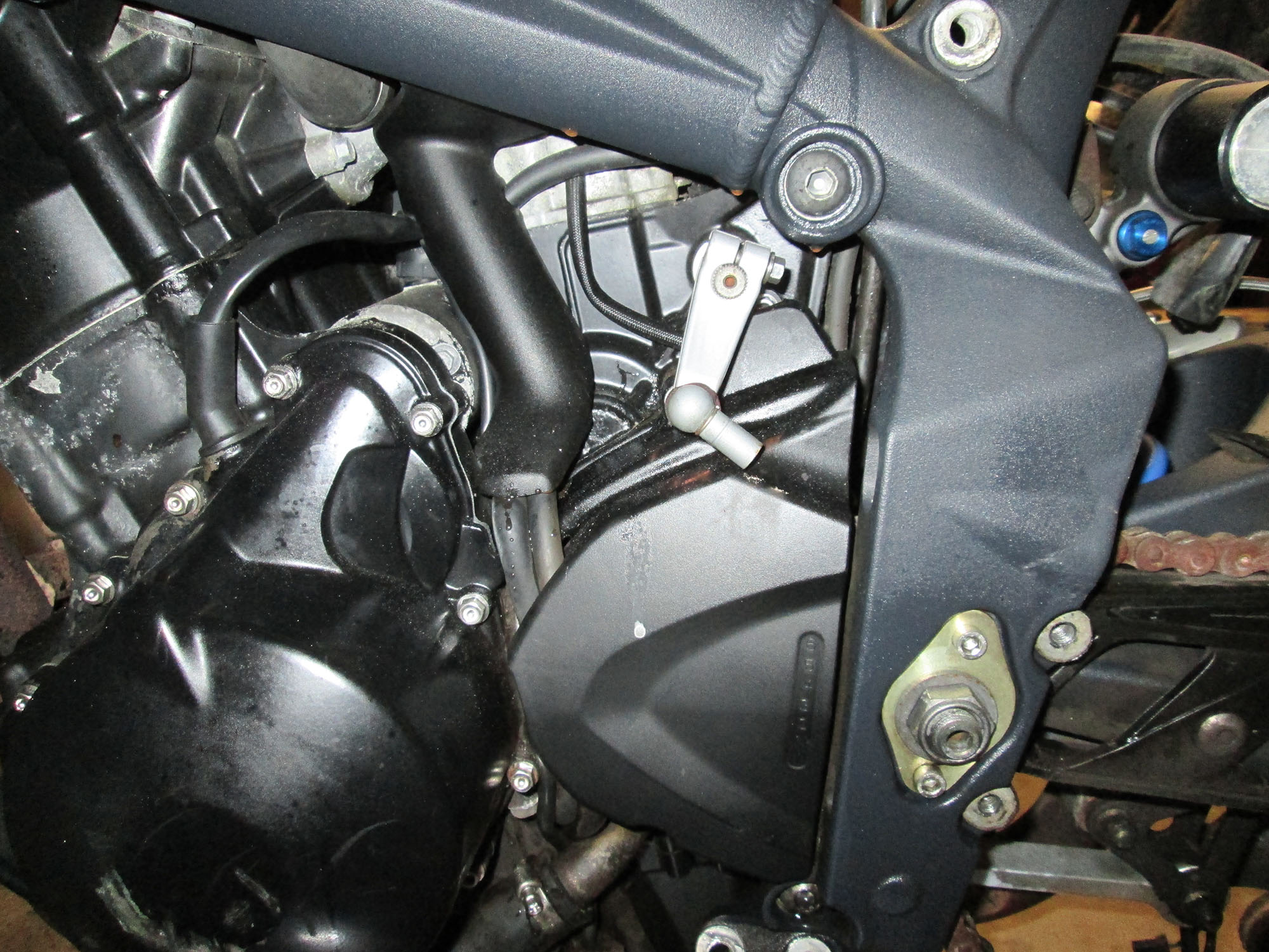 Derfor spændes motoren stumt til rammens højre side, og den venstre side har