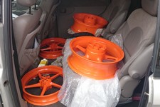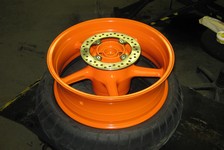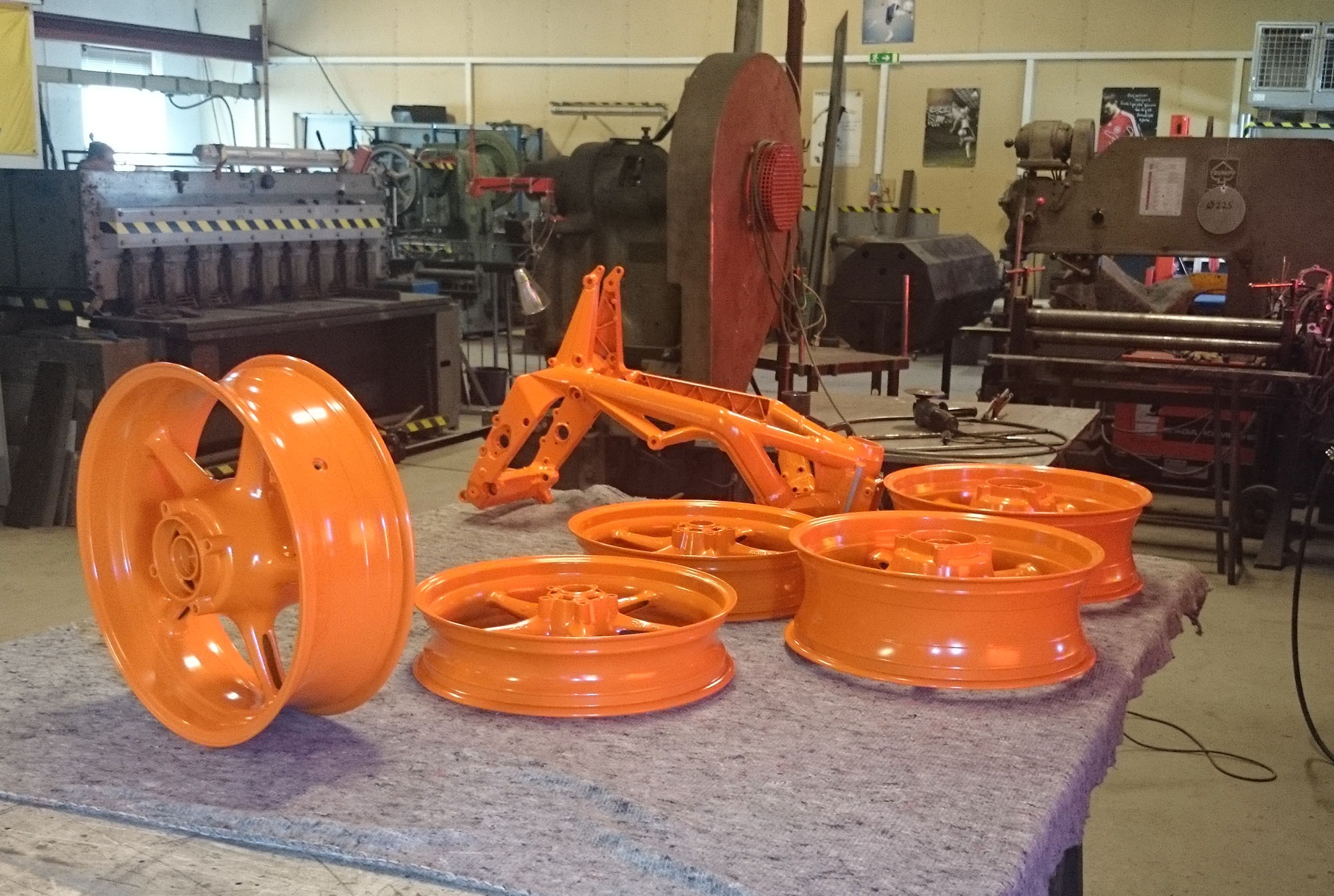 da rammen og hjulen skal glasblæstres og pulverpakeres i en hidsig farve.