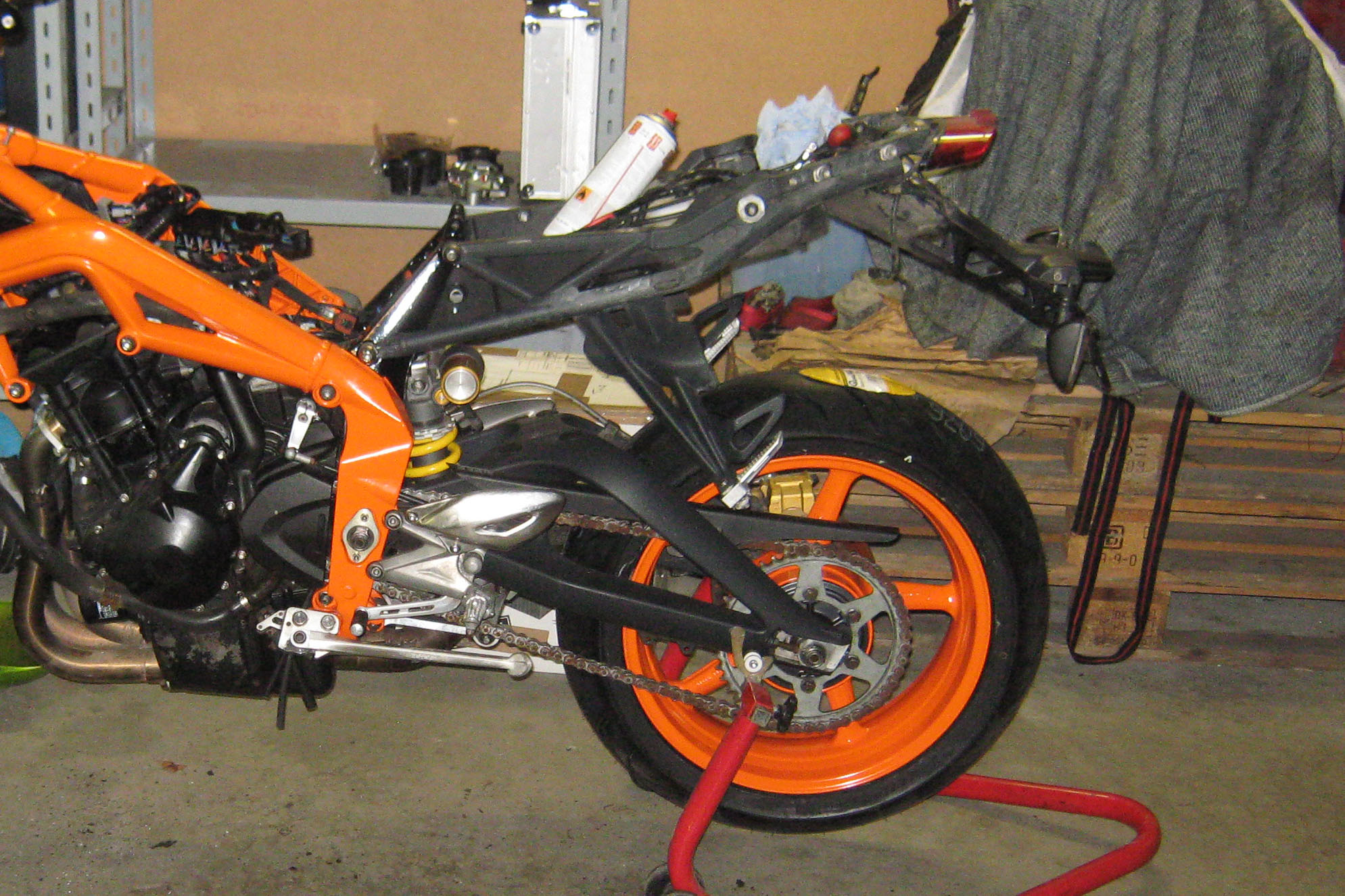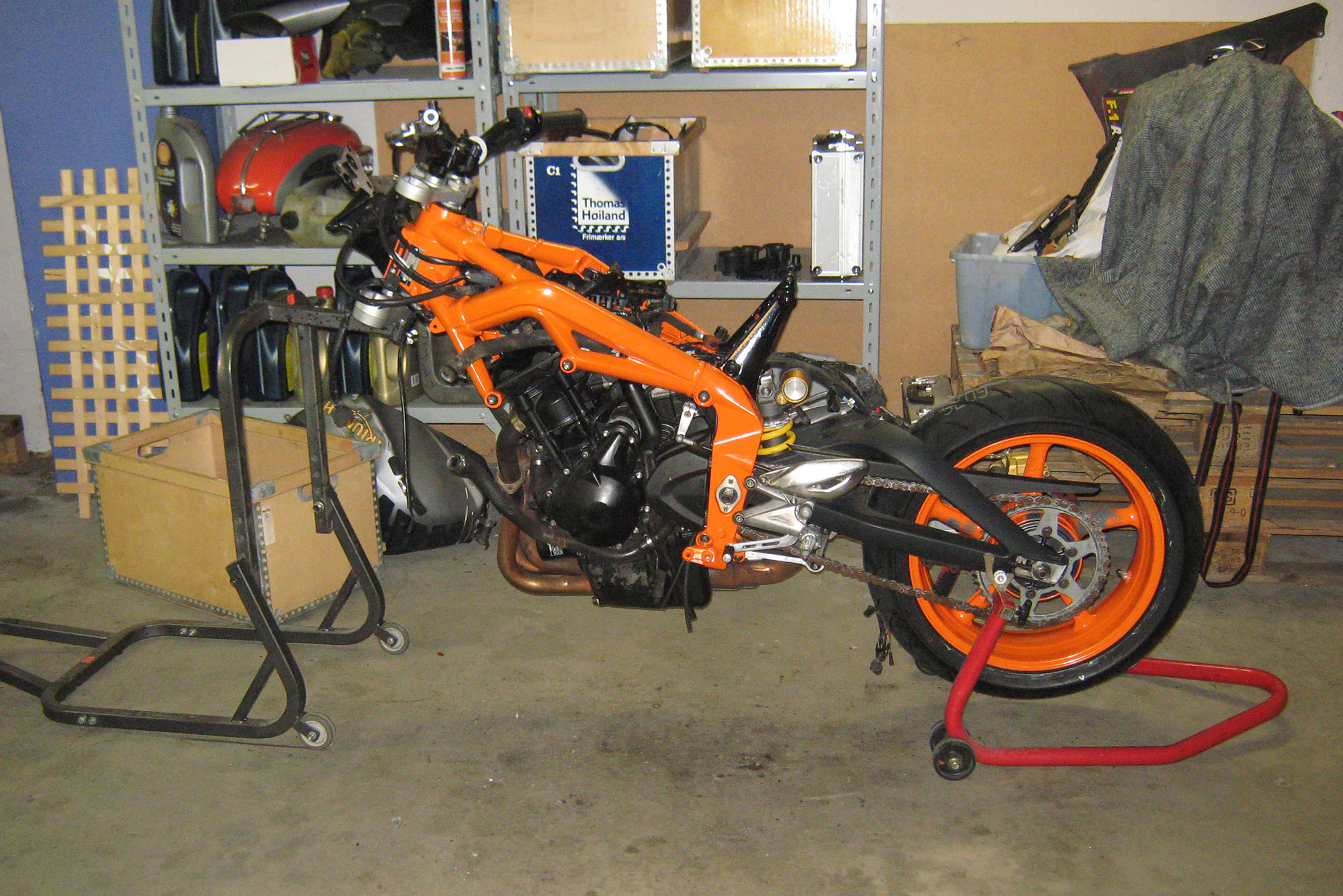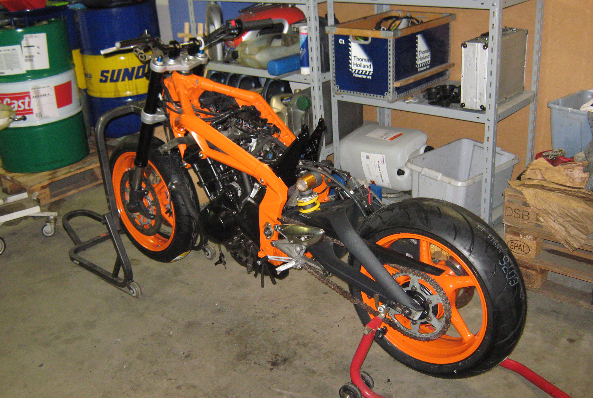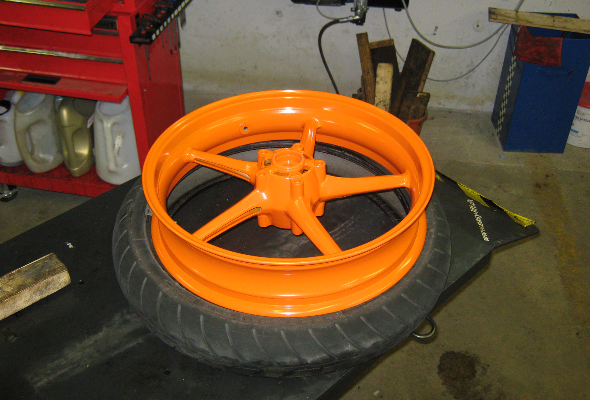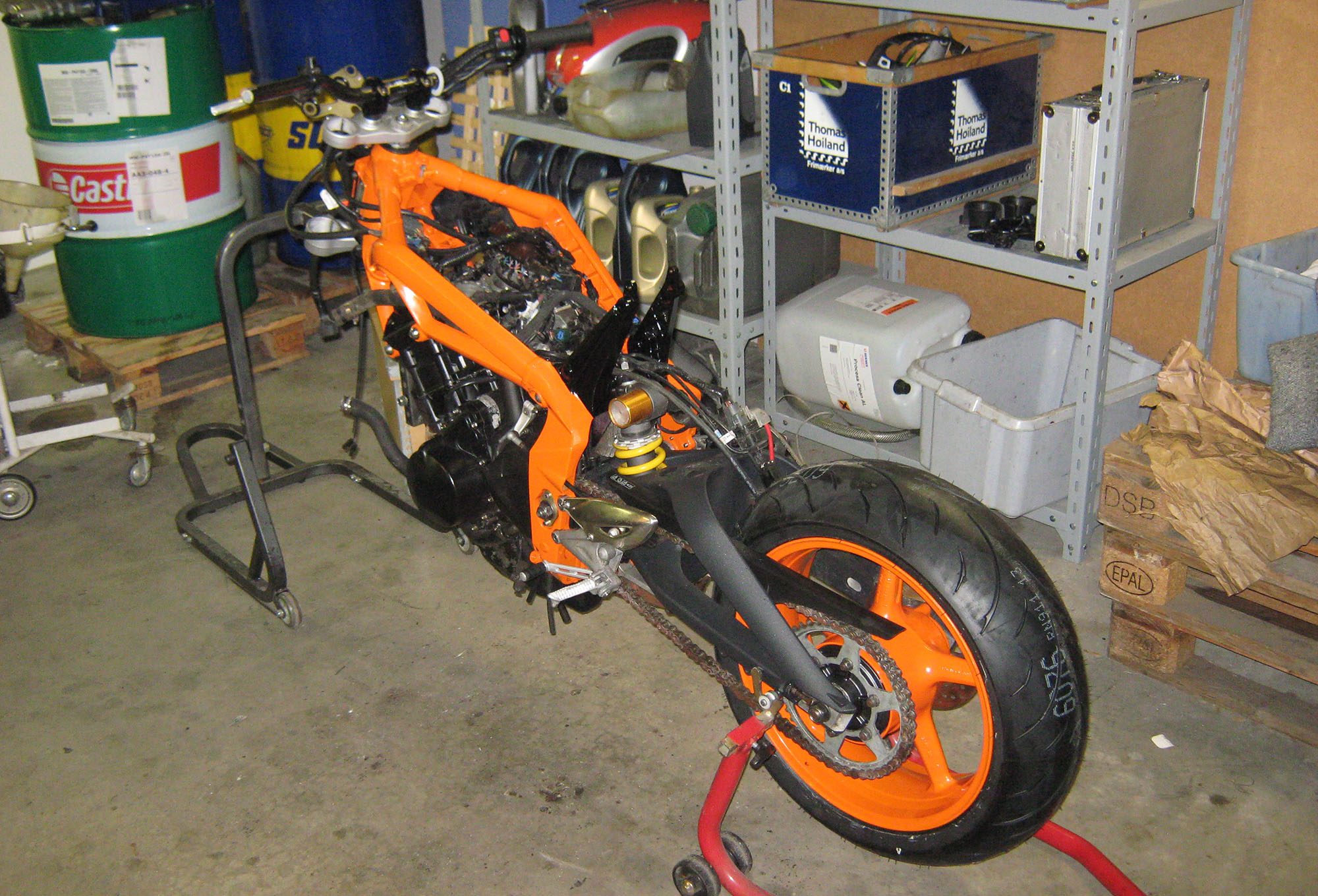 Sker ikke meget. Motor venter. Fælgene der venterer er fra den her cykel og fra min