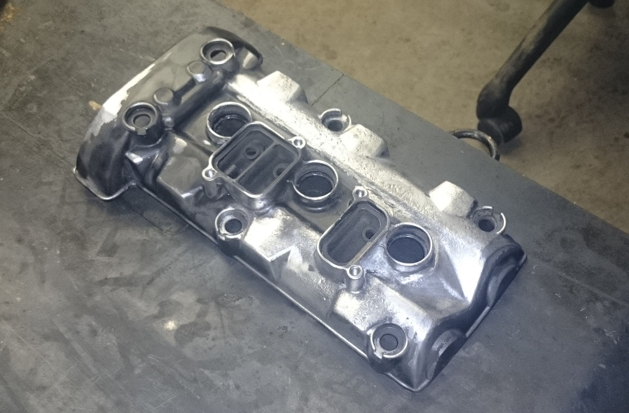 Ventildækslet monteret. Samtidlig passer jeg på at fjerne SAI (Secondary Air