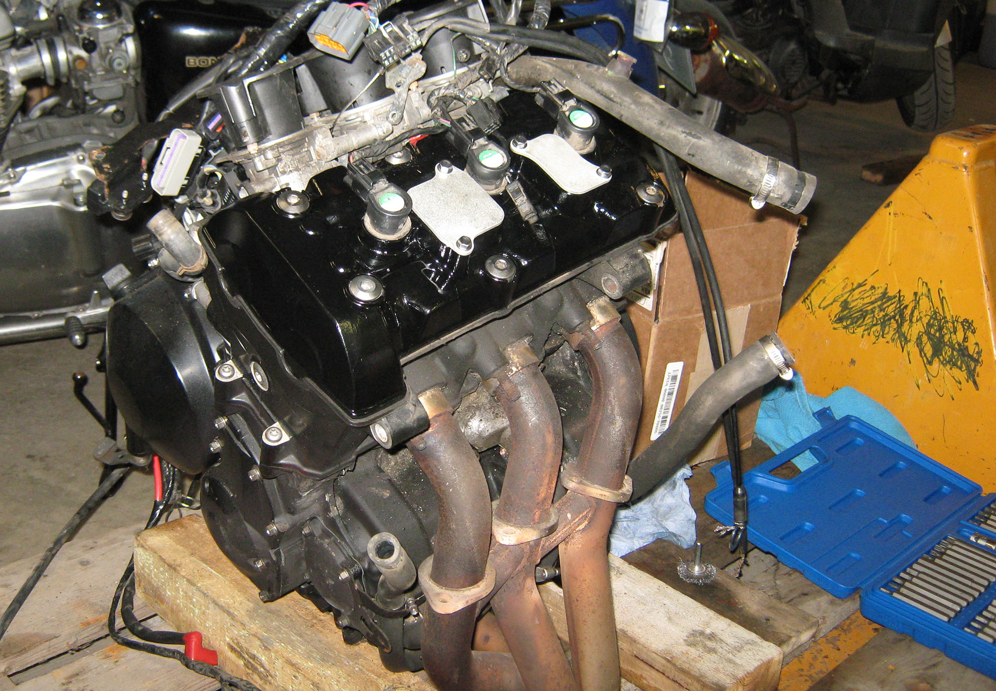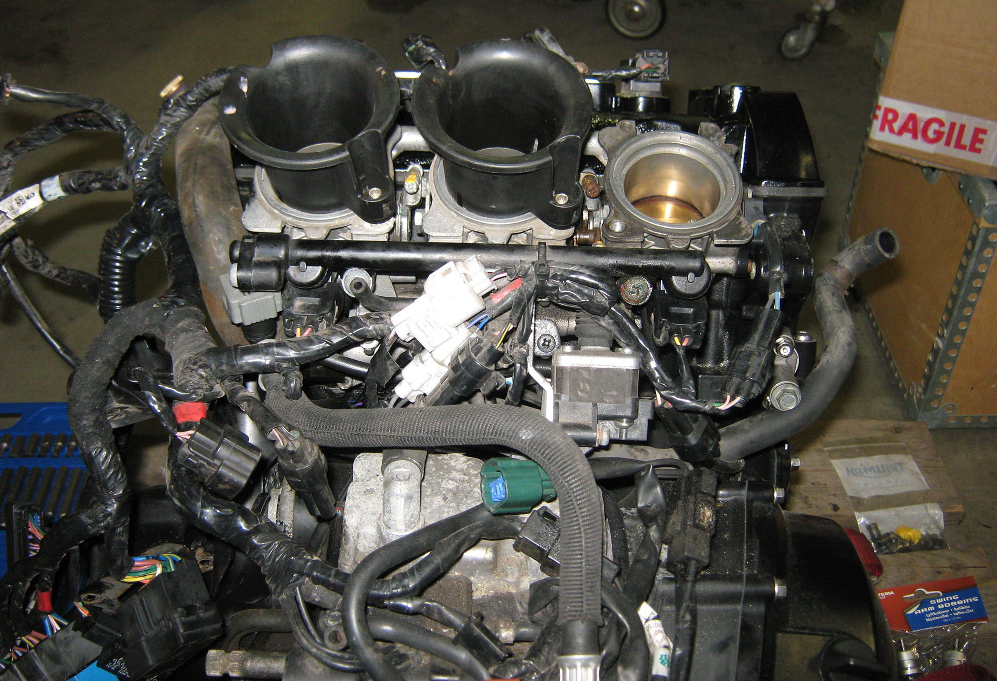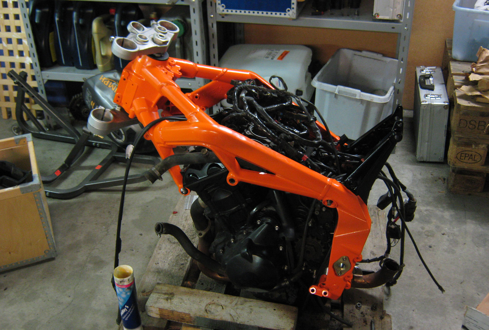 Venter stadig på bremsebolte plus andre dele til køler, udstødning og el. Men jeg faldt