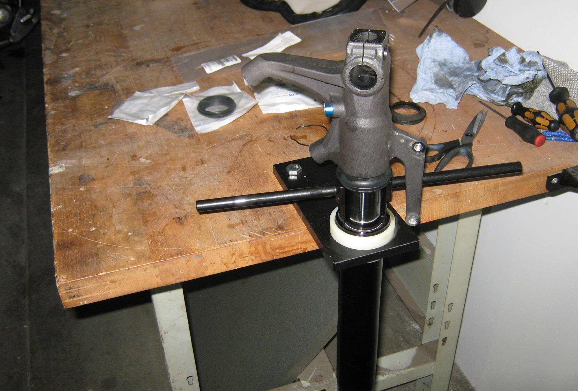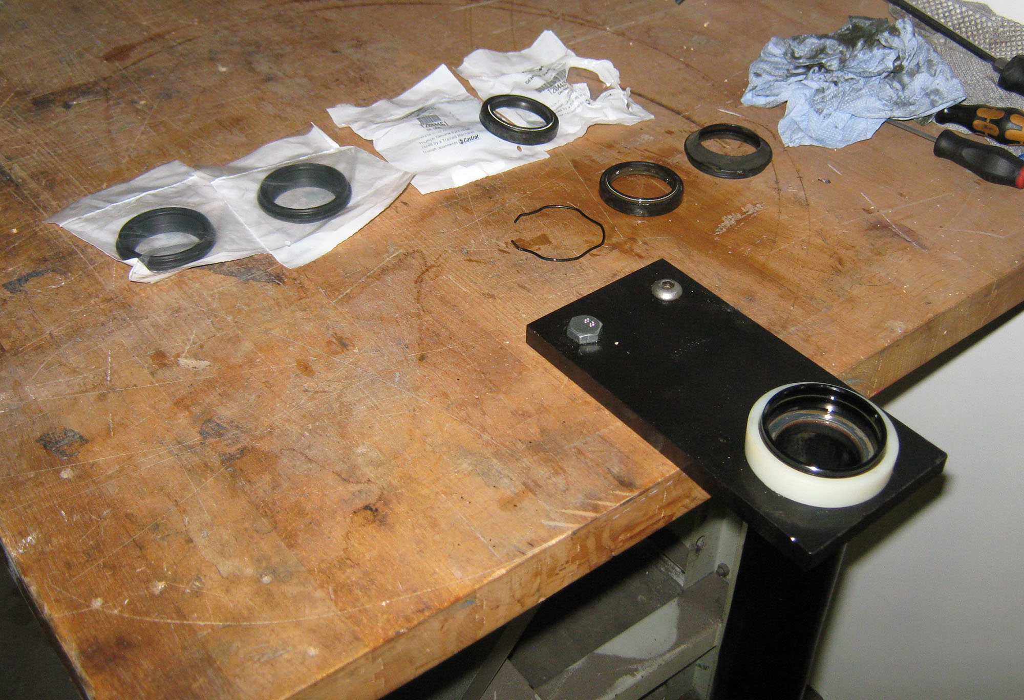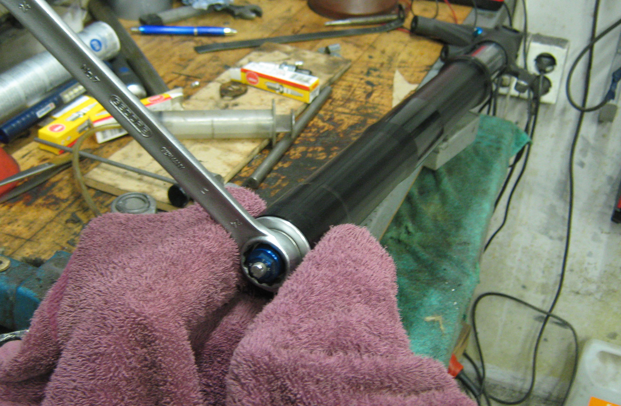 Forgaflen skal fixes. Gammel grim olje skal ud. Jeg skiller gaflen helt ad så de