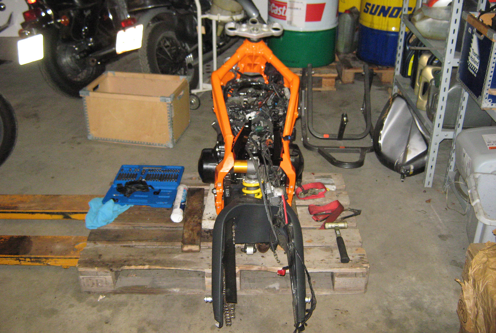 Så der blev kun lidt småting som styr, tændningslås, ledninger, fodhvilere, bagbrems,