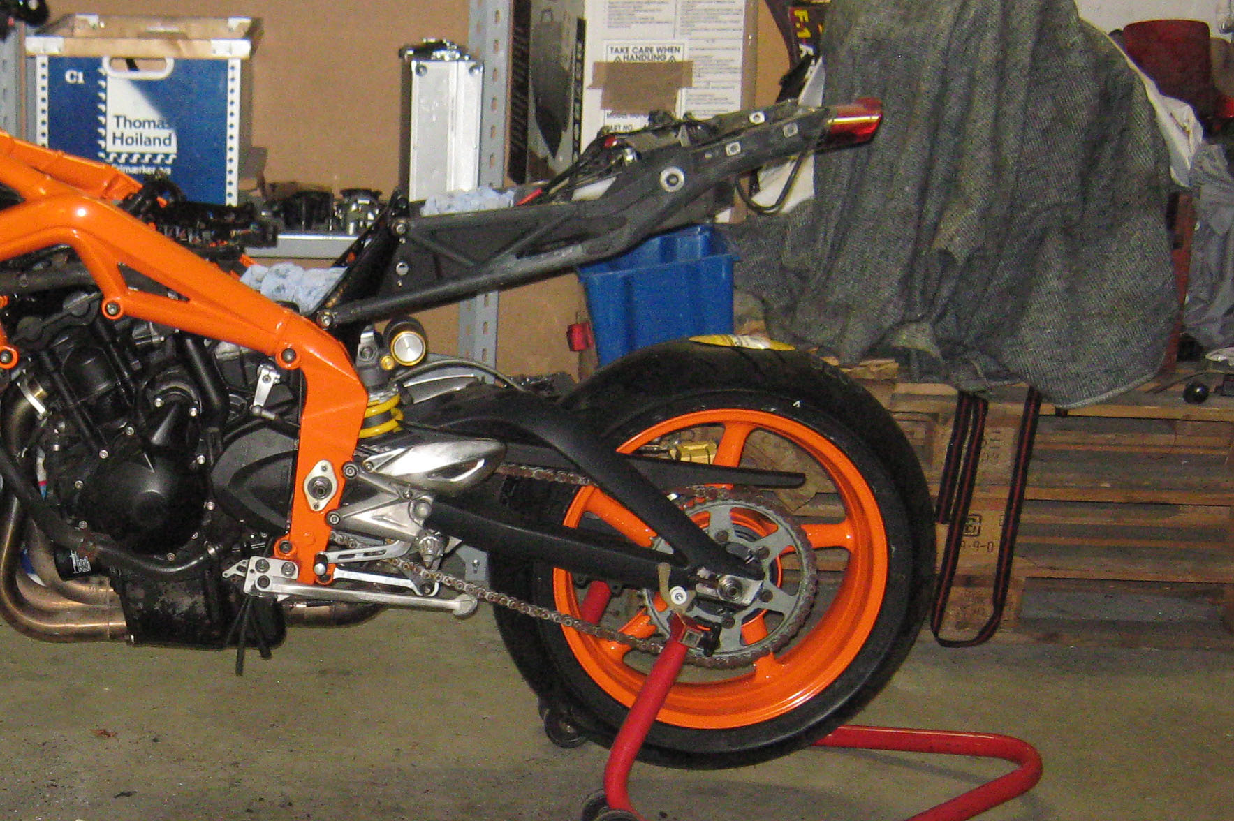 Og så kan den monteres på motorcyklen. På bagenden fik jeg fjernet den store
