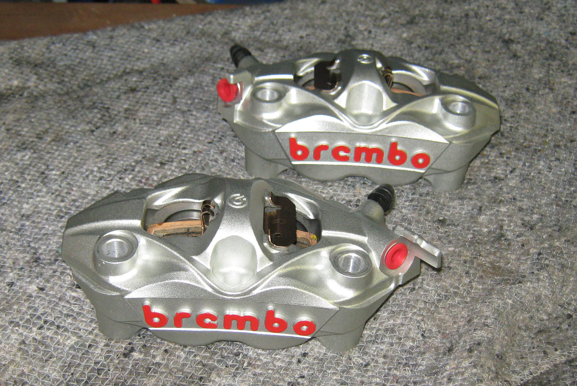 finde et par Brembo M4 kalibere der laves i et stykke, ikke to stykker der skrues sammen.