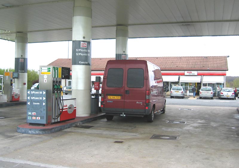 1) & 2) En tankstation i Frankrig.