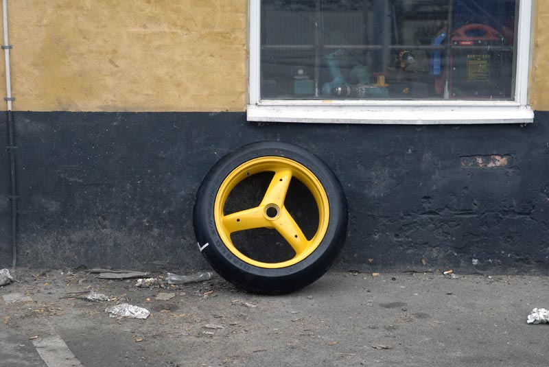 og studser frem de sidste 50 meter før svinget. Noget man gør på gaden en gang hvert
