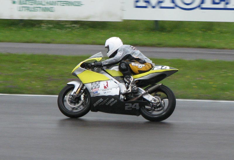 1), 2) og 3) En regnkører på en 2-takt 250cc GP-racer på 70 kg og 90 hk. Den går godt.