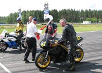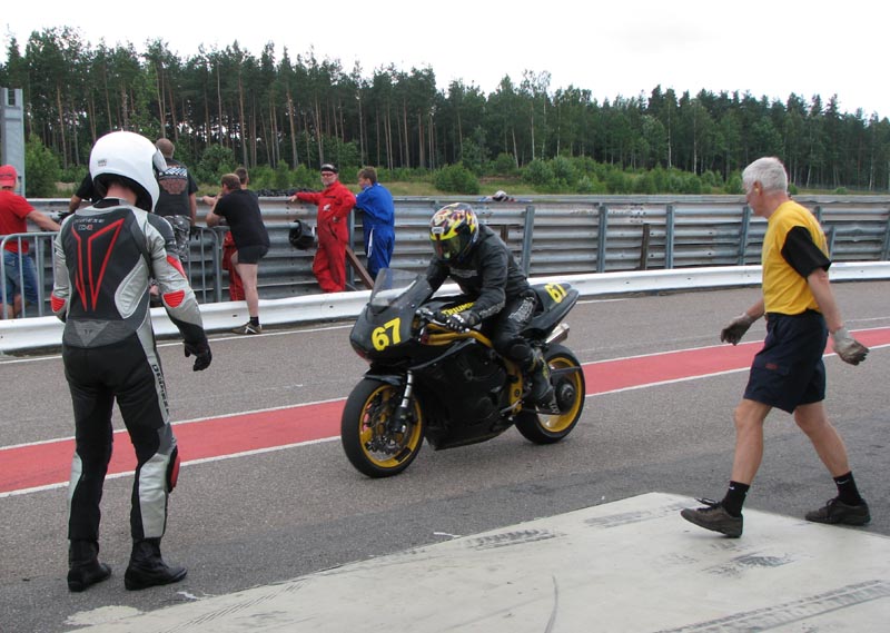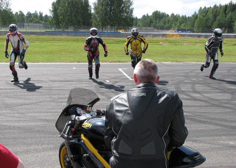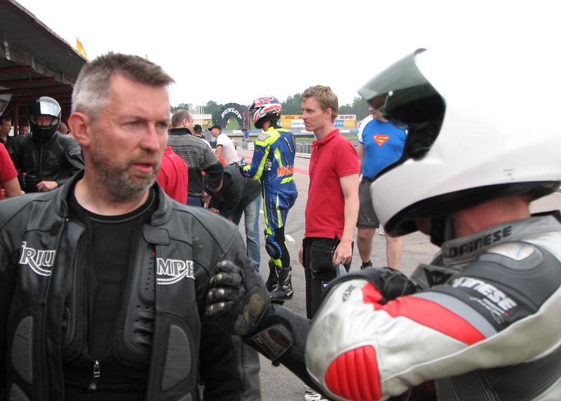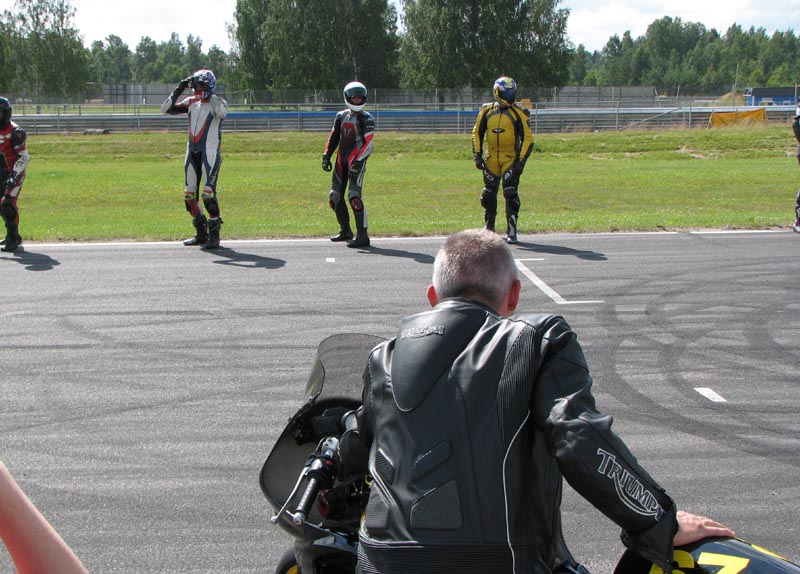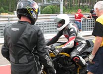 En anden deltager på træningen, Tommy fra Skåne, der kører en gul Daytona 675, siger at