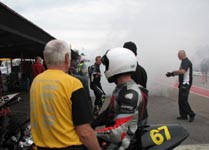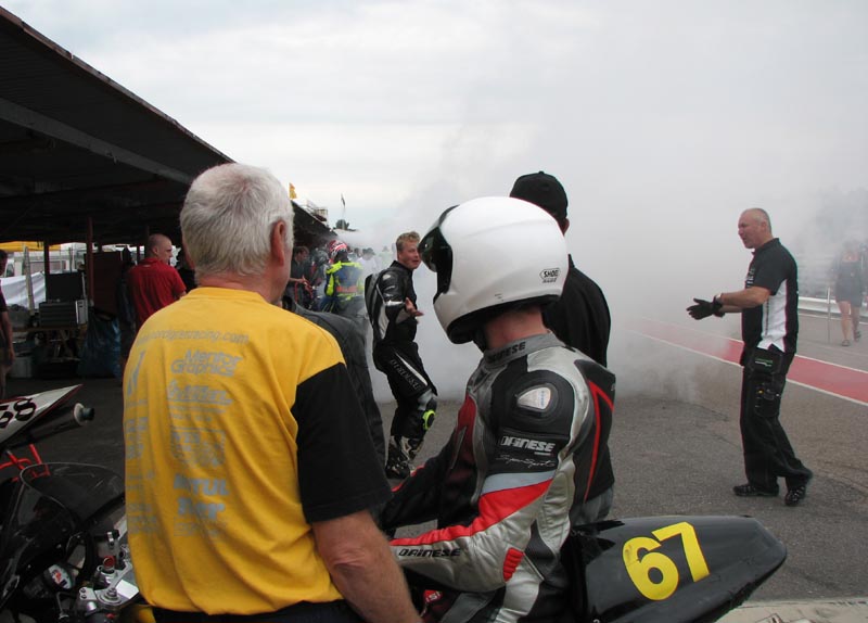 En del team laver burn outs for at markere sin glæde. Bl.a. team #18 "Allt i Däck"