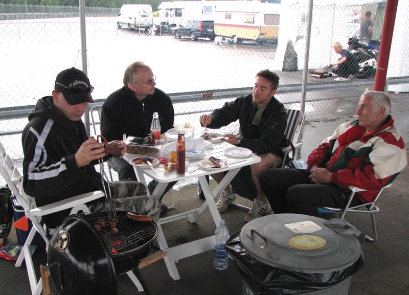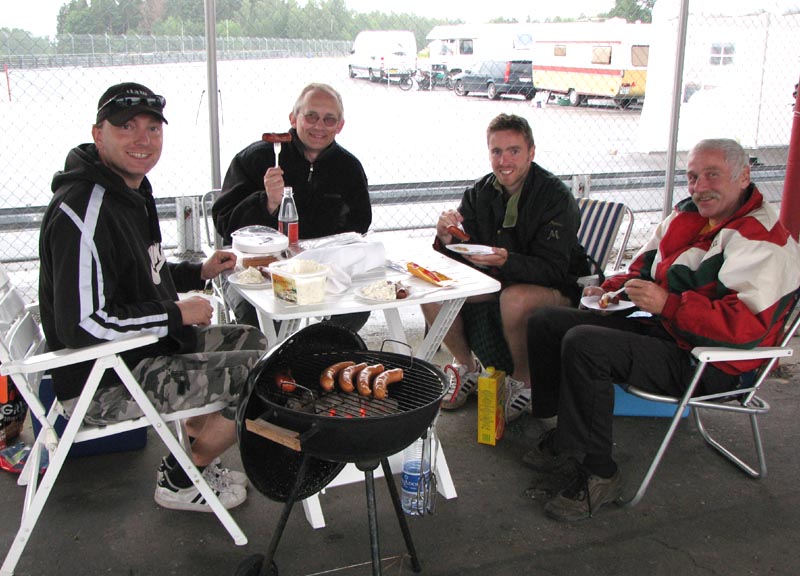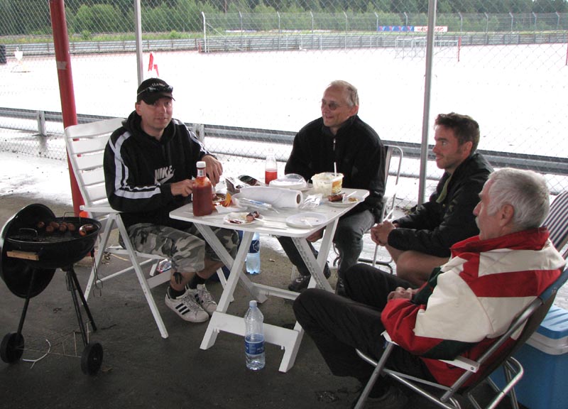 vælter ned, mens vi sidder under tag i pitboxen og nyder grillmaden. Vi er heldige på