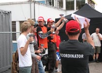 Vi går og kikker på prisuddelingen. Anden plads er team #291 med nogle seje Pro Superbike
