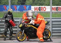 omgange. Jeg bliver vinket ind og kører i pit til kørerskifte. Ingen står ved