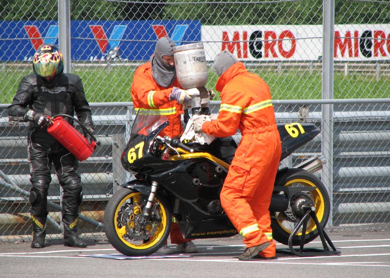 1), 2) og 3) Team #67 "Triumph Rats" gør klar i pitboxen.