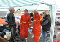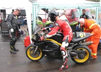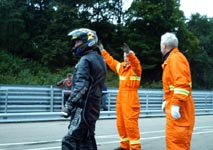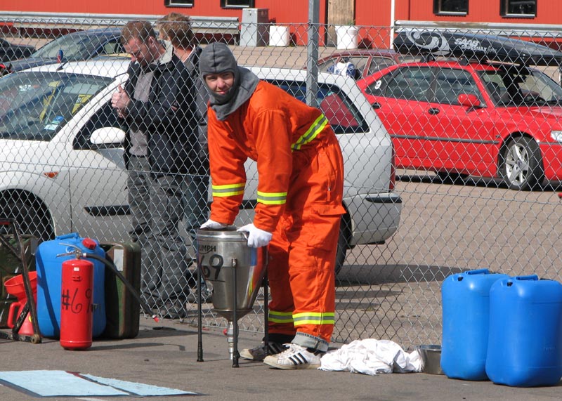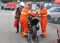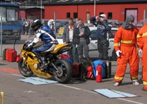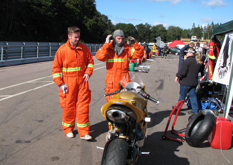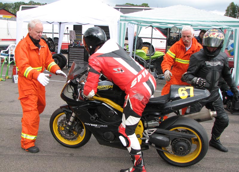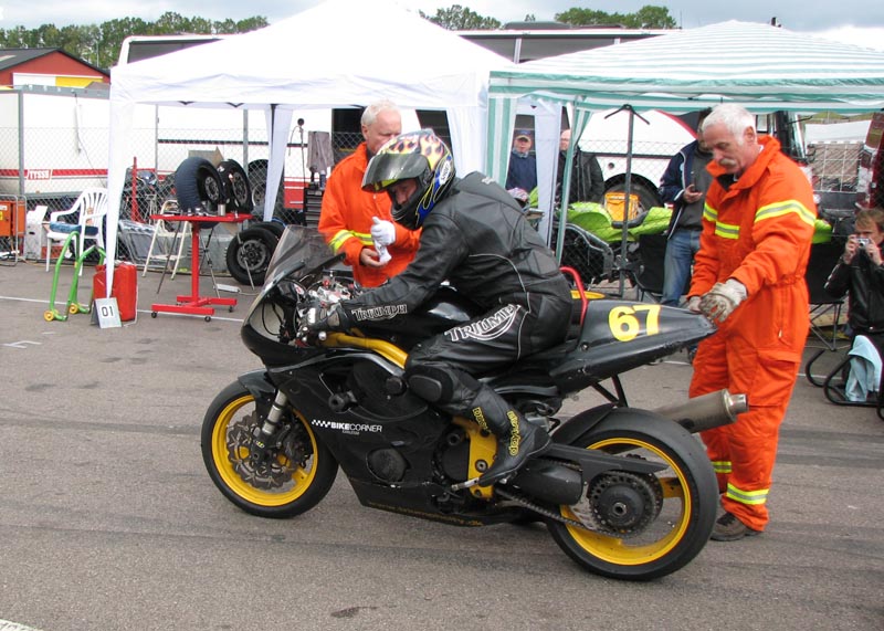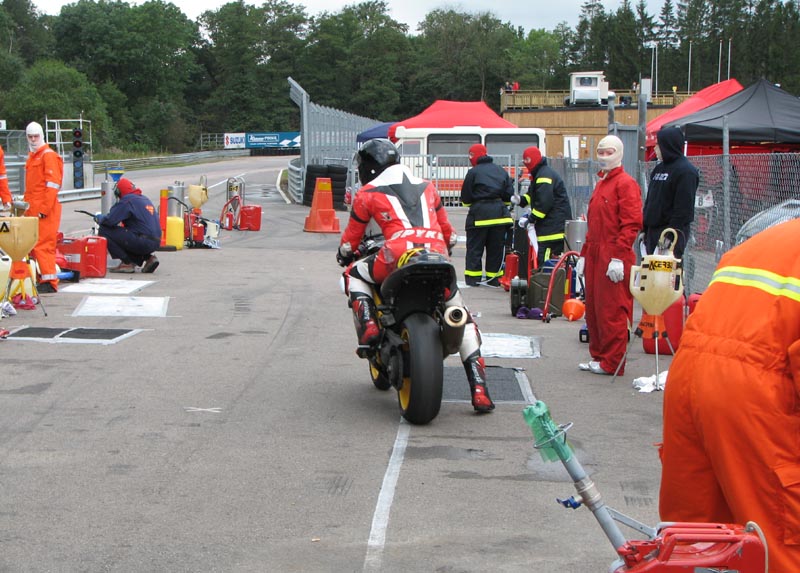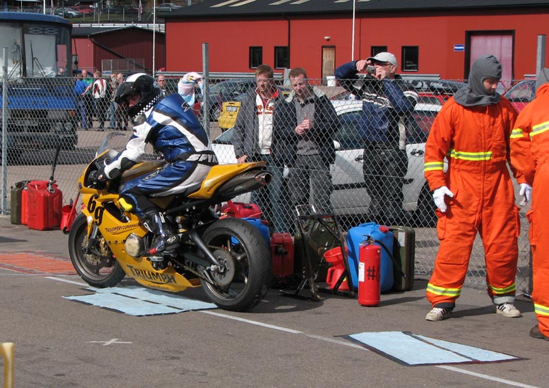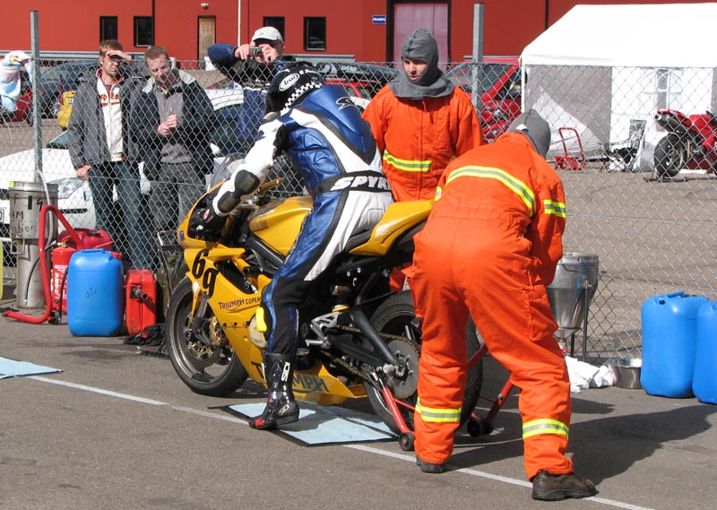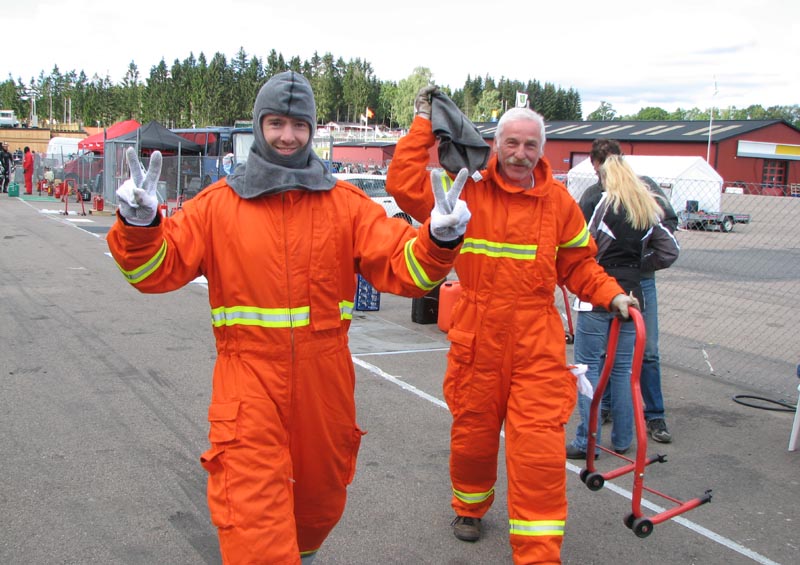 står klar med ildslukkeren enligt reglerne. Så er vi klare og jeg kan køre ud på banen.