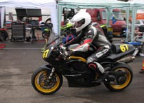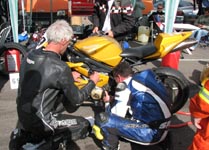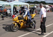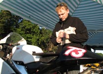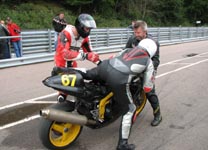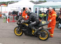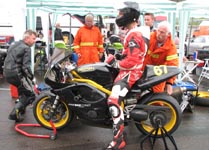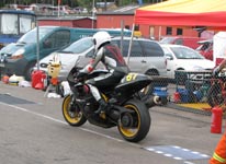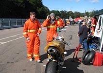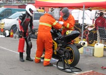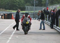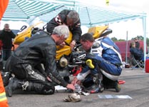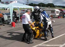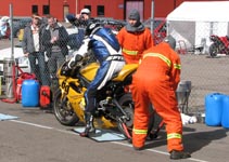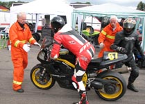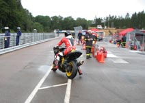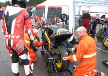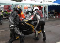 får han rejst cyklen. Den starter og kan køres hjem til pit for kontrol.