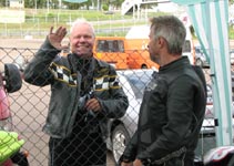 og får cyklen tanket op af Björn og Lasse. Og så er det ud på banen.