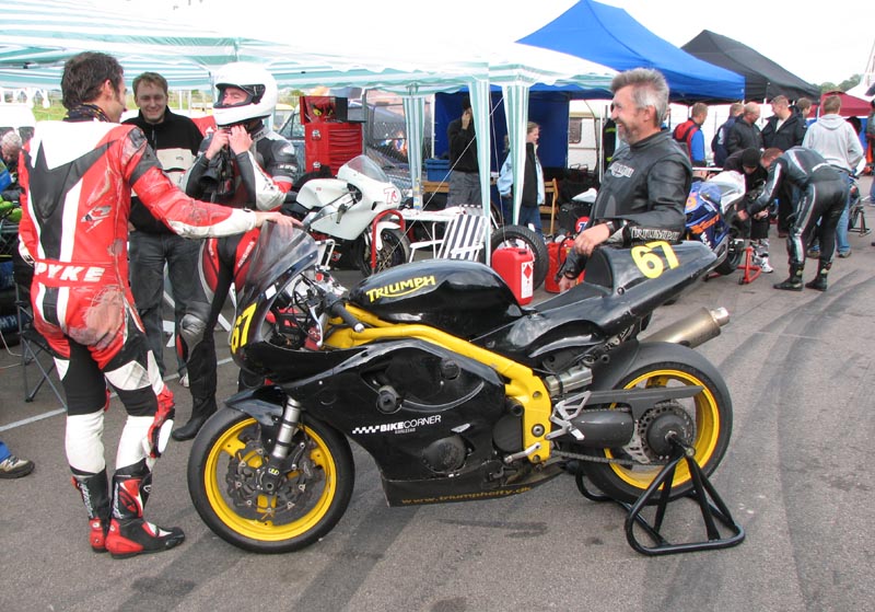 den gule Triumph Daytona 675 med nummer 69 på kåbene.