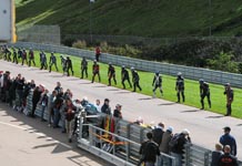 ud på banen. Vi taber 7 minutter på hjulskifte. De andre team som også skal skifte til