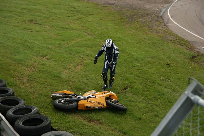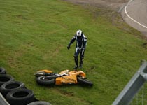 Så friskt at han igen væltede. Lidt for hurtigt ind i svinget og forhjulet