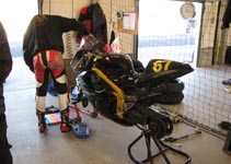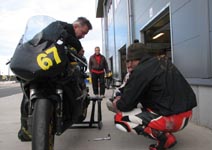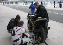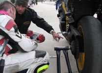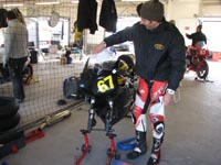 Vi får cyklen til pit boksen og spørger Mikael hvad der er galt. Den kan ikke skifte gear!