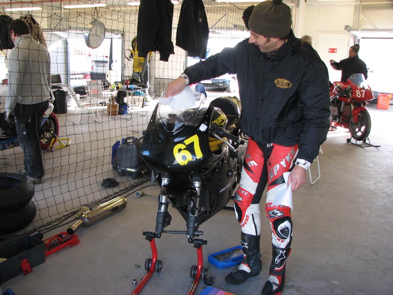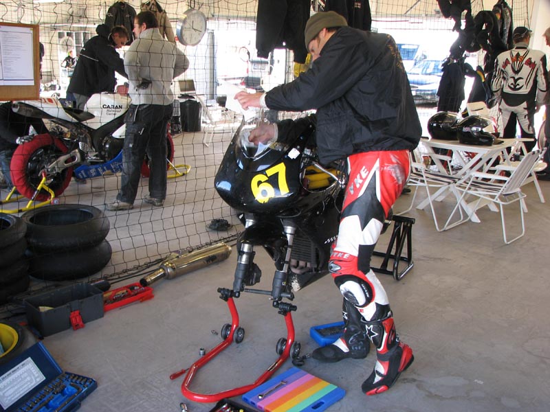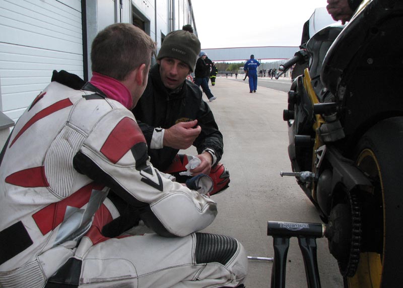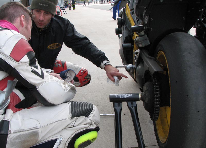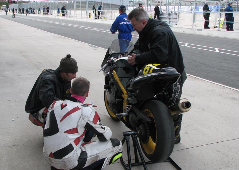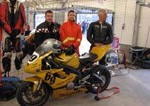 Triumph Daytona 675. Björn og mig tager jobbet som tankassistenter.
