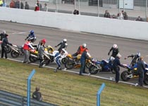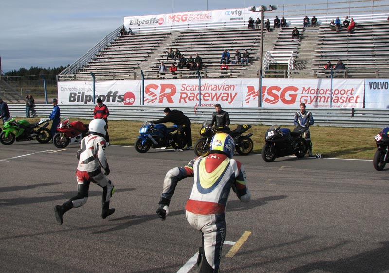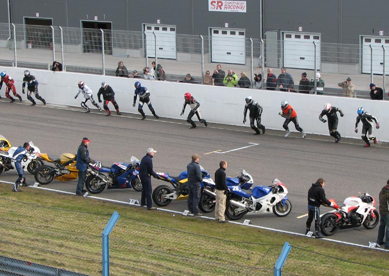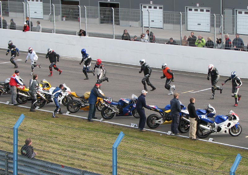 klare til startopstilling. Den klassiske Le Mans start hvor cyklerne står på en række
