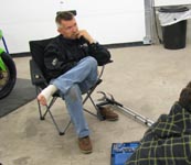 Vi gør klar til kvalifikationen. Jeg binder sammen venstre fod og prøver at
