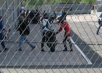bensinen til næste tankning. Vi shanghaier også en gut fra nabo-teamet til at