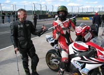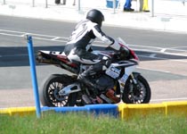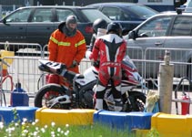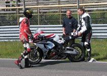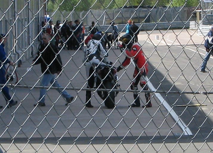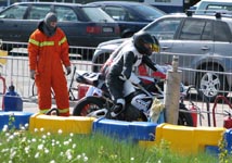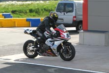 køre ind til førerskifte. Men... hvad ser jeg... er det ikke en cykel ved siden af banen?