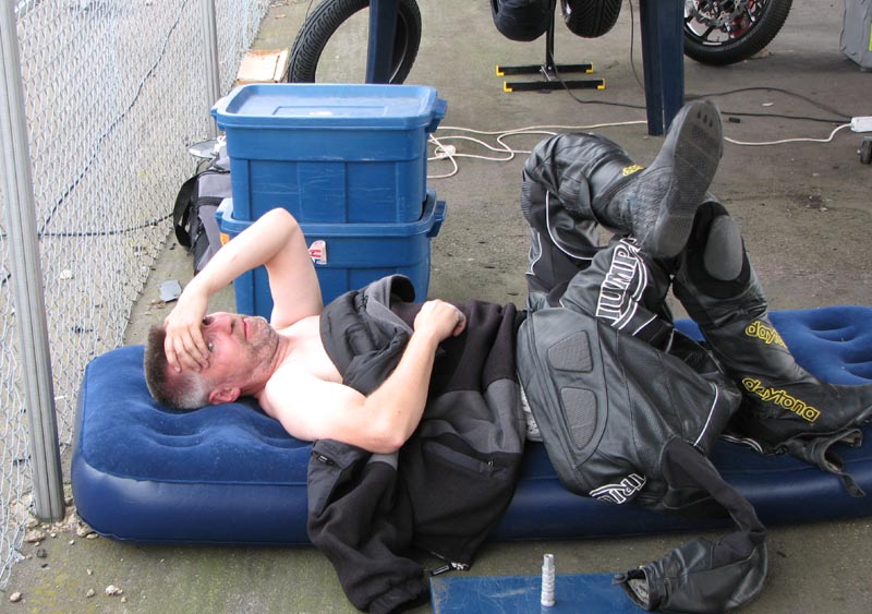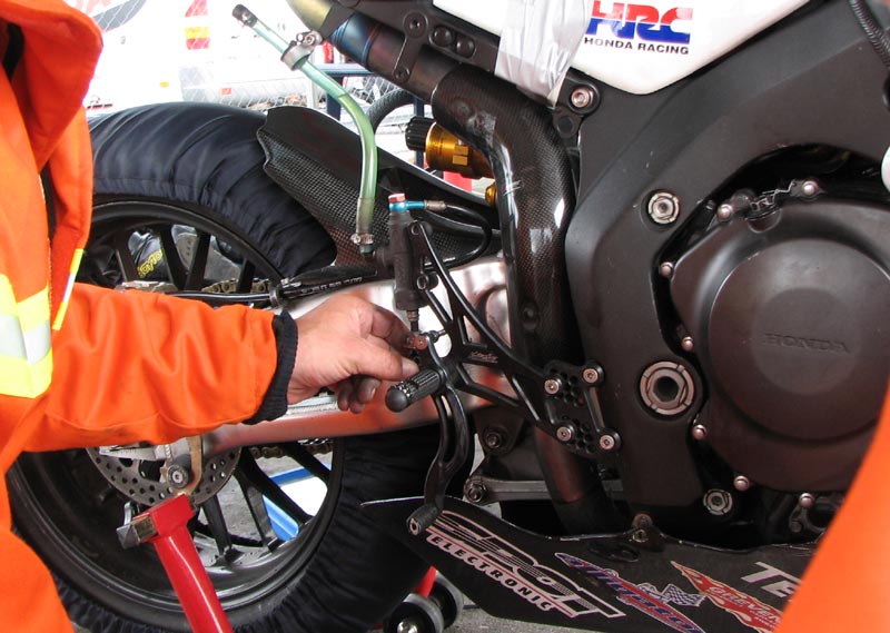 Vores dækvarmer er gået i stykker. Hurtigt gå jeg gennem pitten og spørger konkurrenterne om nogen