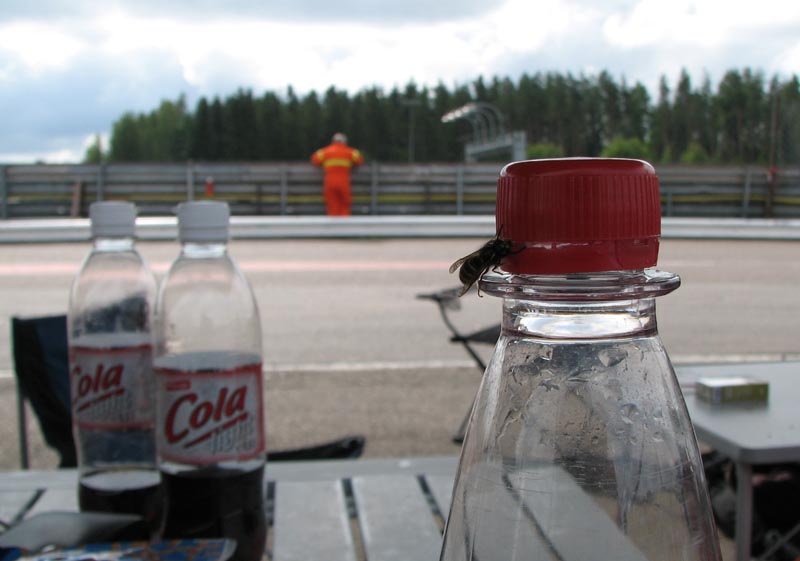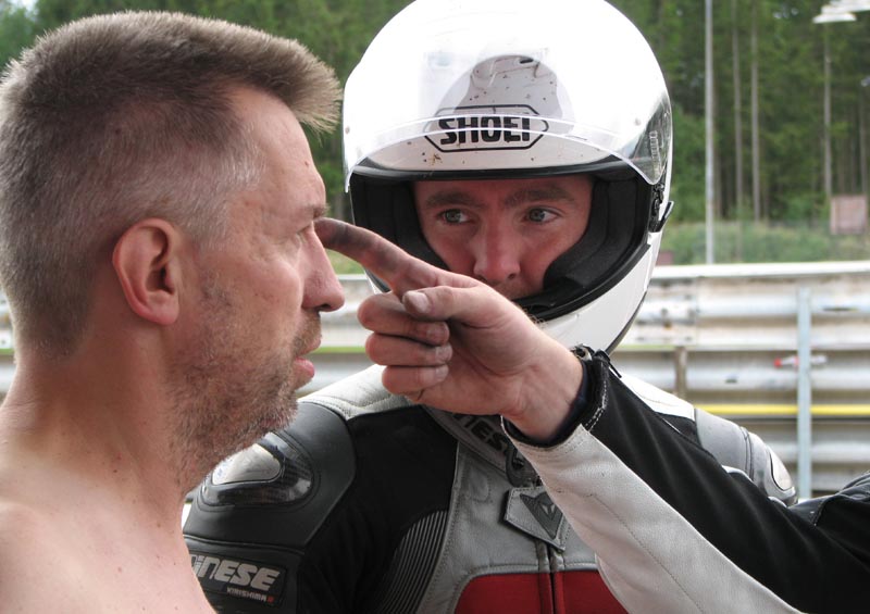 Pludslig kommer Michael ind i pit. Vi løber frem og spørger hvad der er galt. Ikke noget