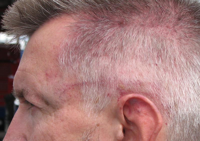 Jeg har små rifter og blåmærken ved øjet og under skalpen. Så jeg skal holdes under