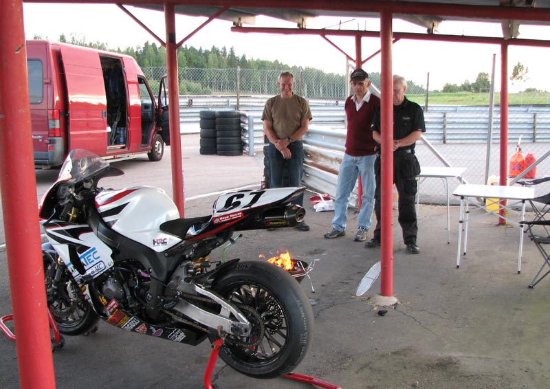 har et ekstra set dækvarmere med sig som de kan låne ud. Team #5 Fiver har et ekstra set som vi