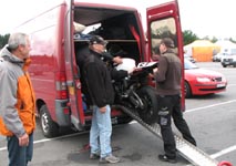 Selve tankningen går fint. John styrer tankanlægget, Preben ordner baghjulstøtten ocg holder styr