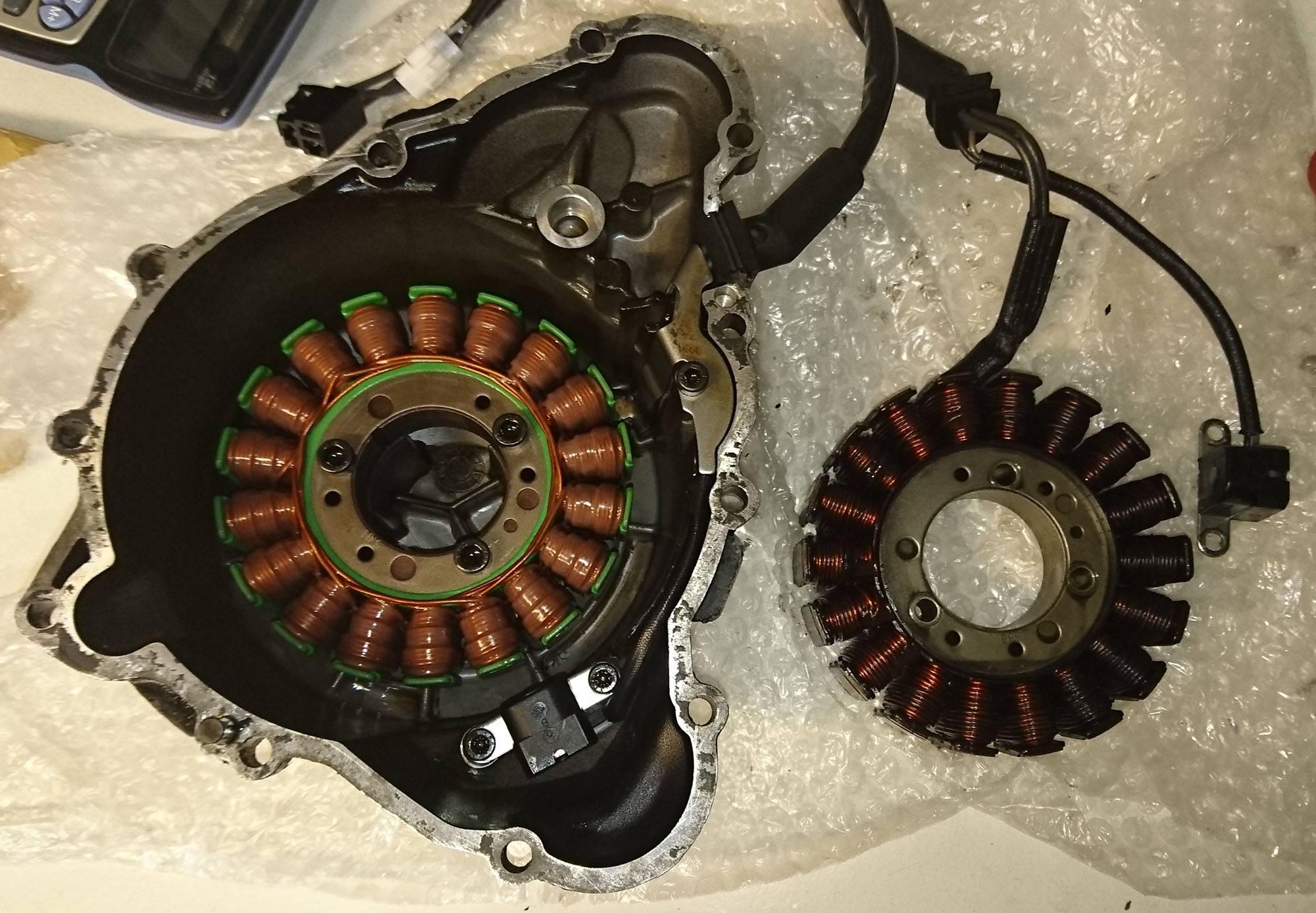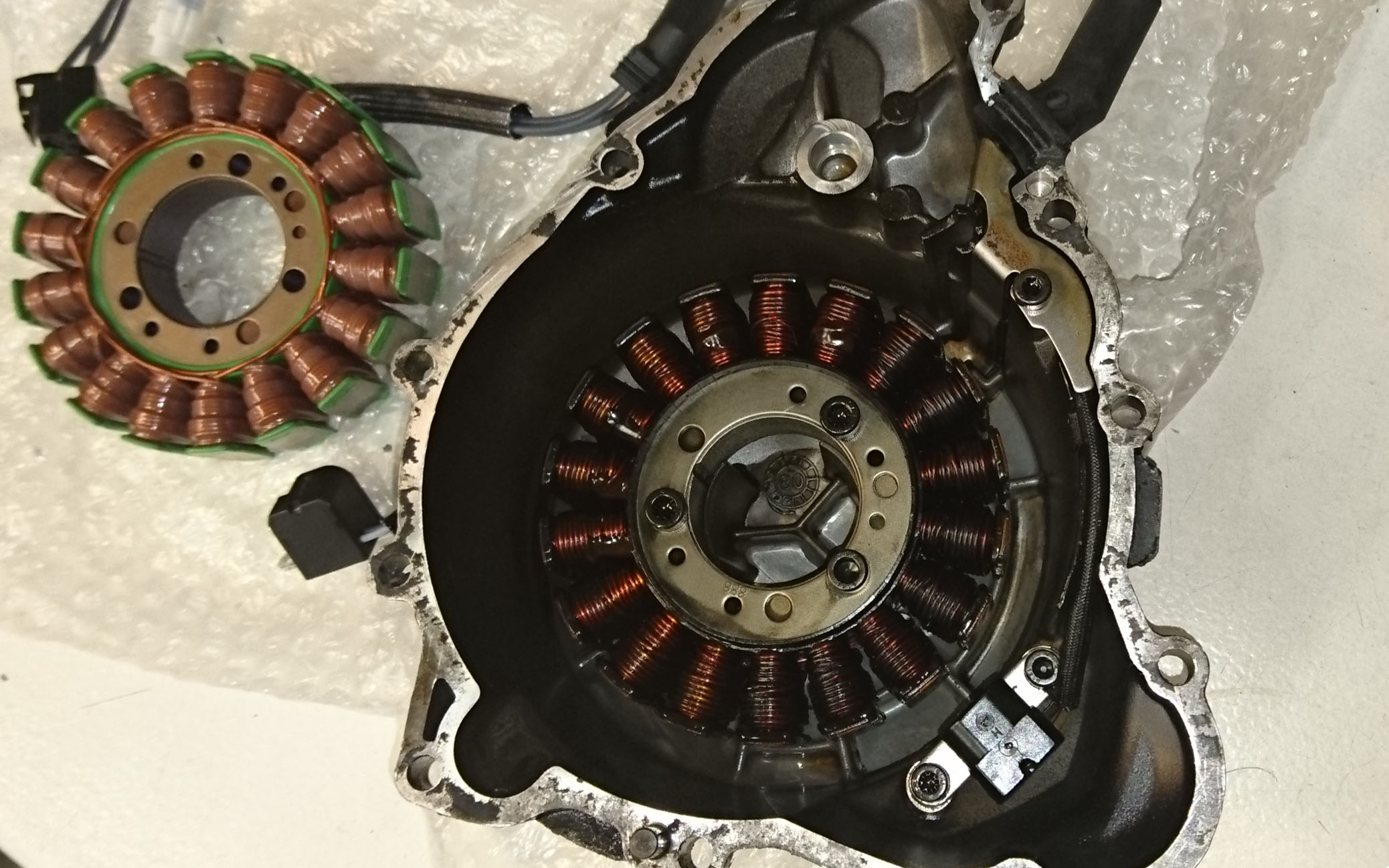 Så jeg fik besilt en ny generator (stator), og monterede den så snart den kom.