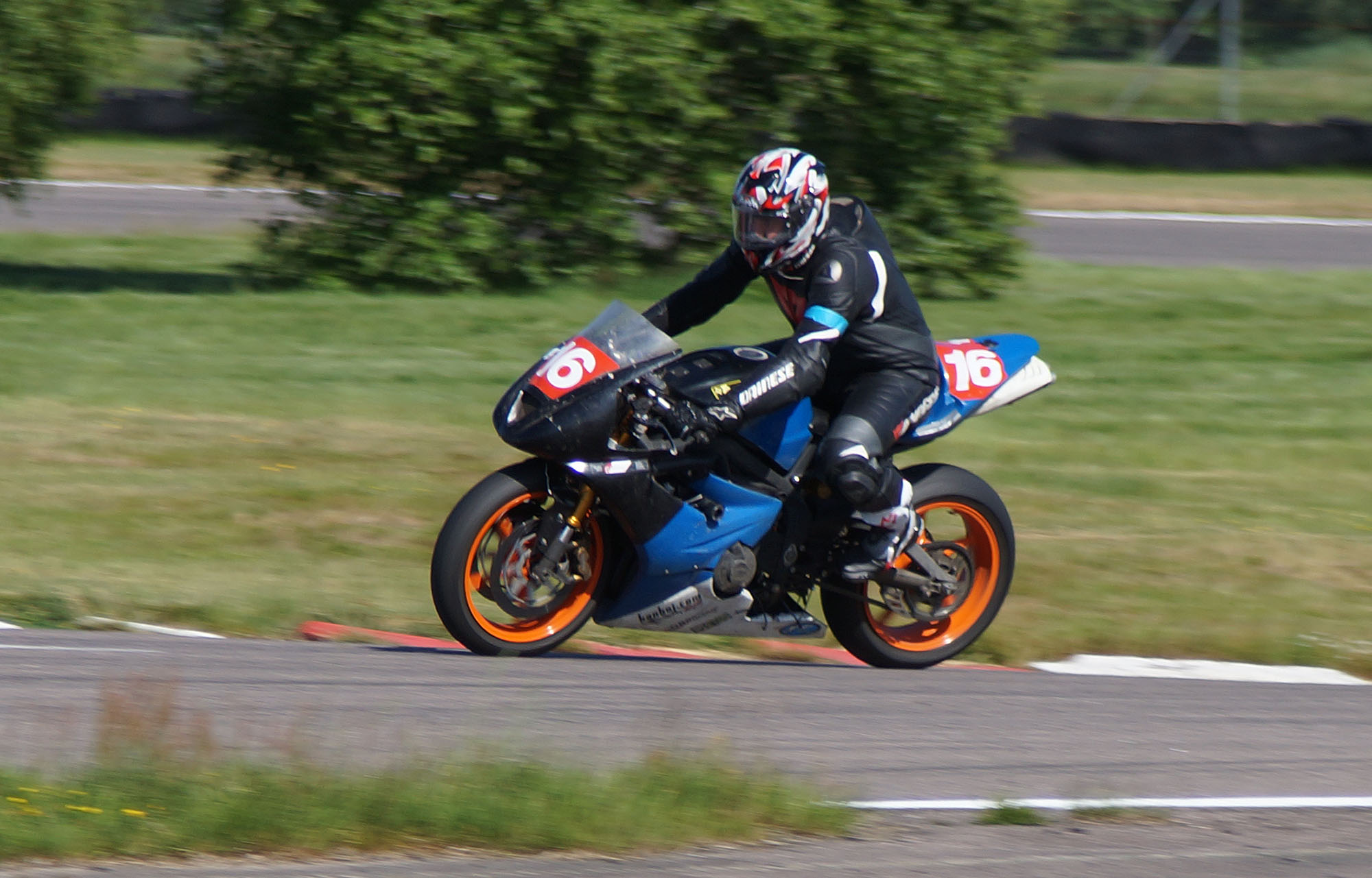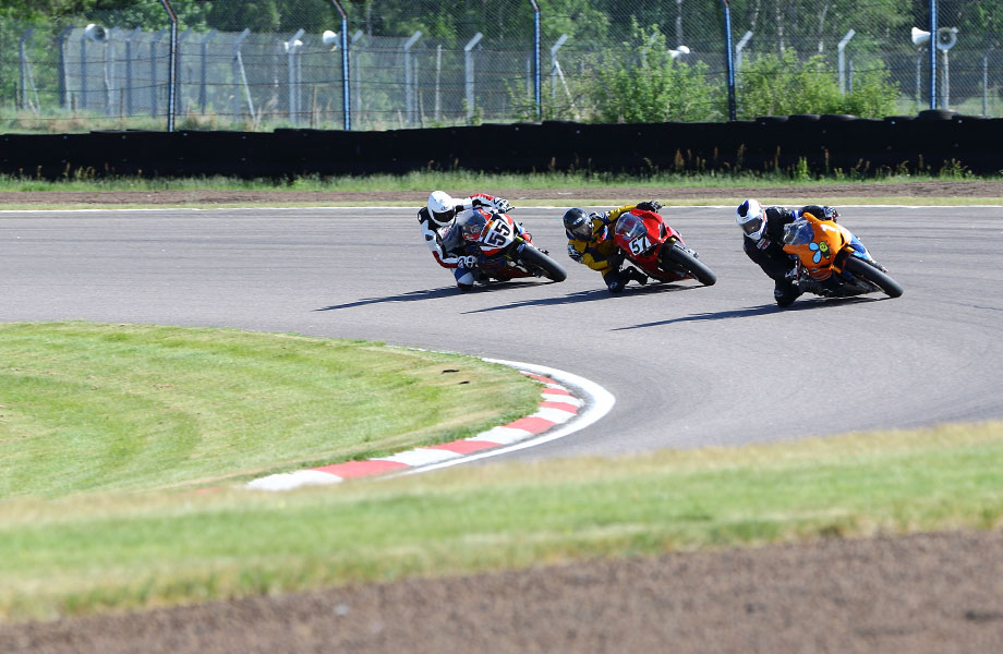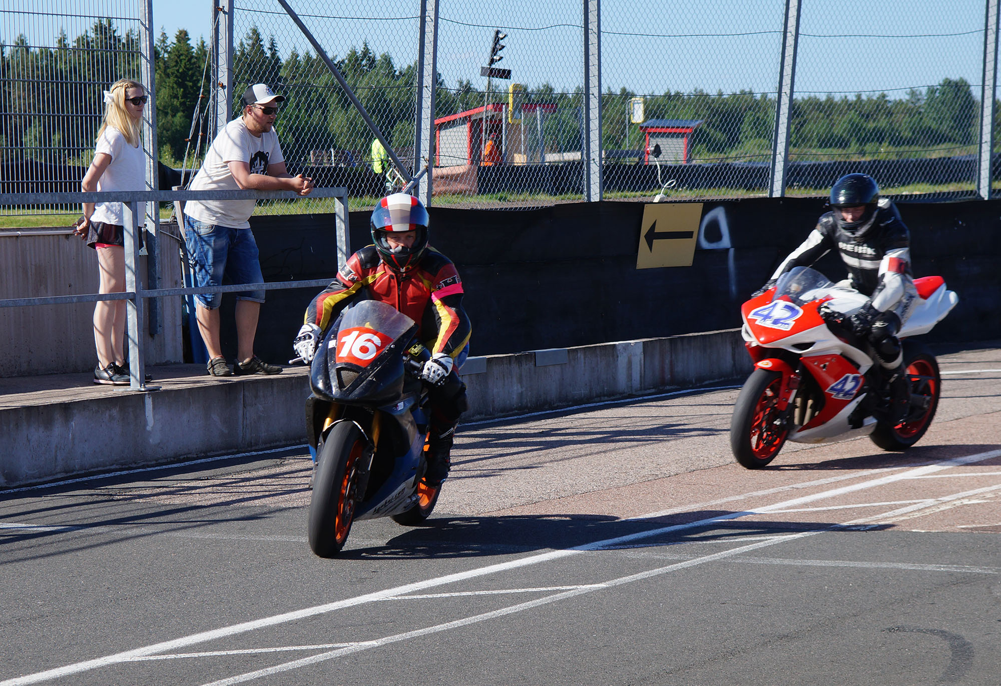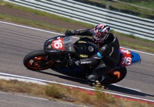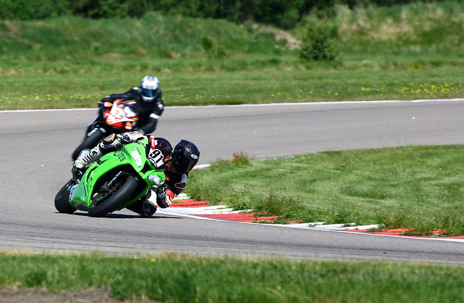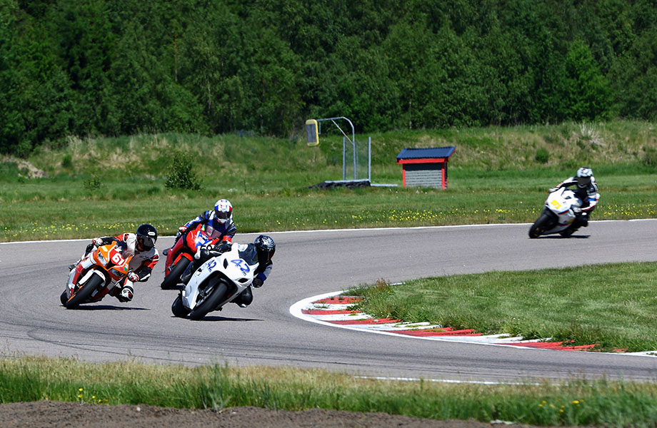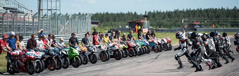 Jonas kører godt med den lille Daytona 675 med 124 hk. De andre 200 hk maskiner suser