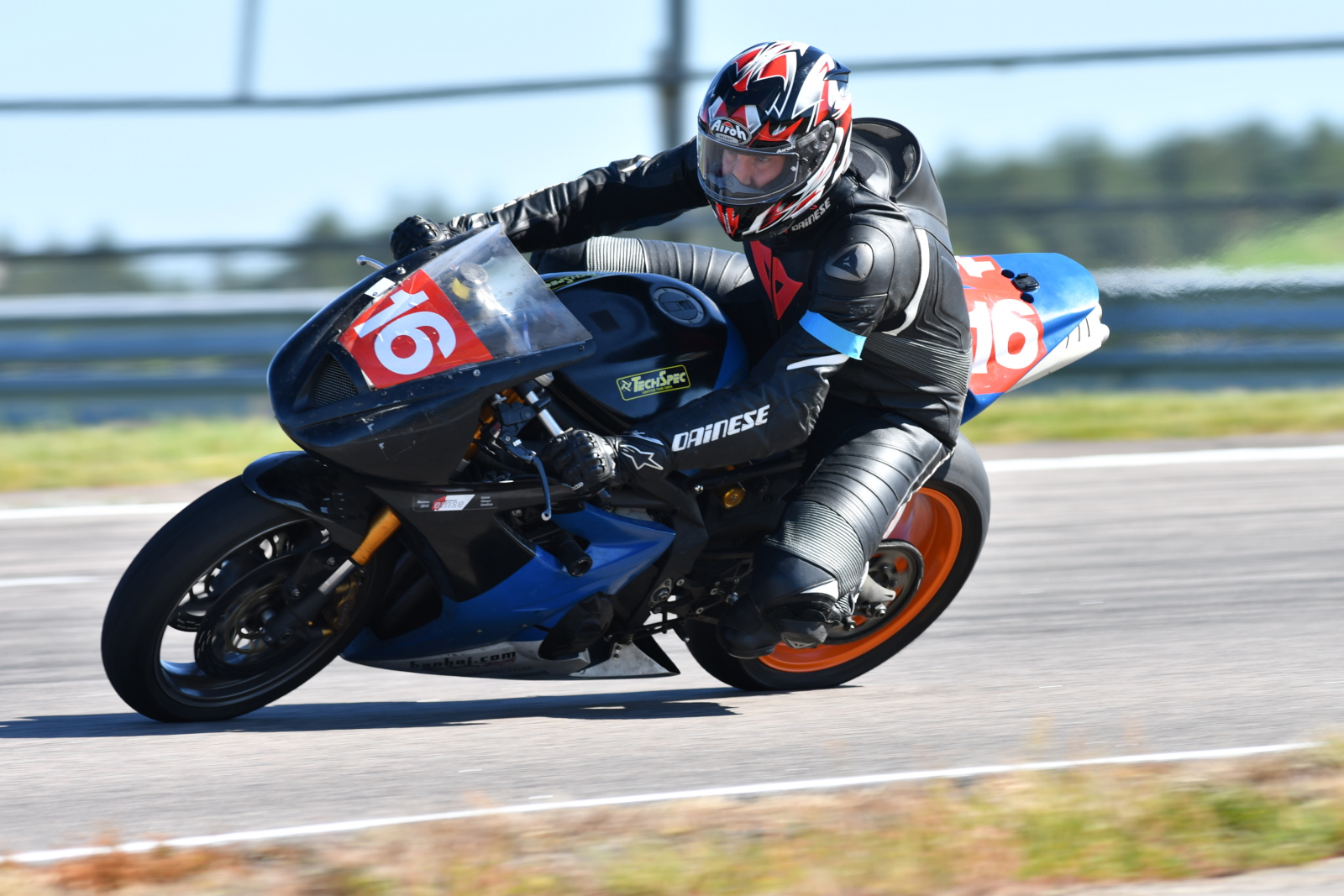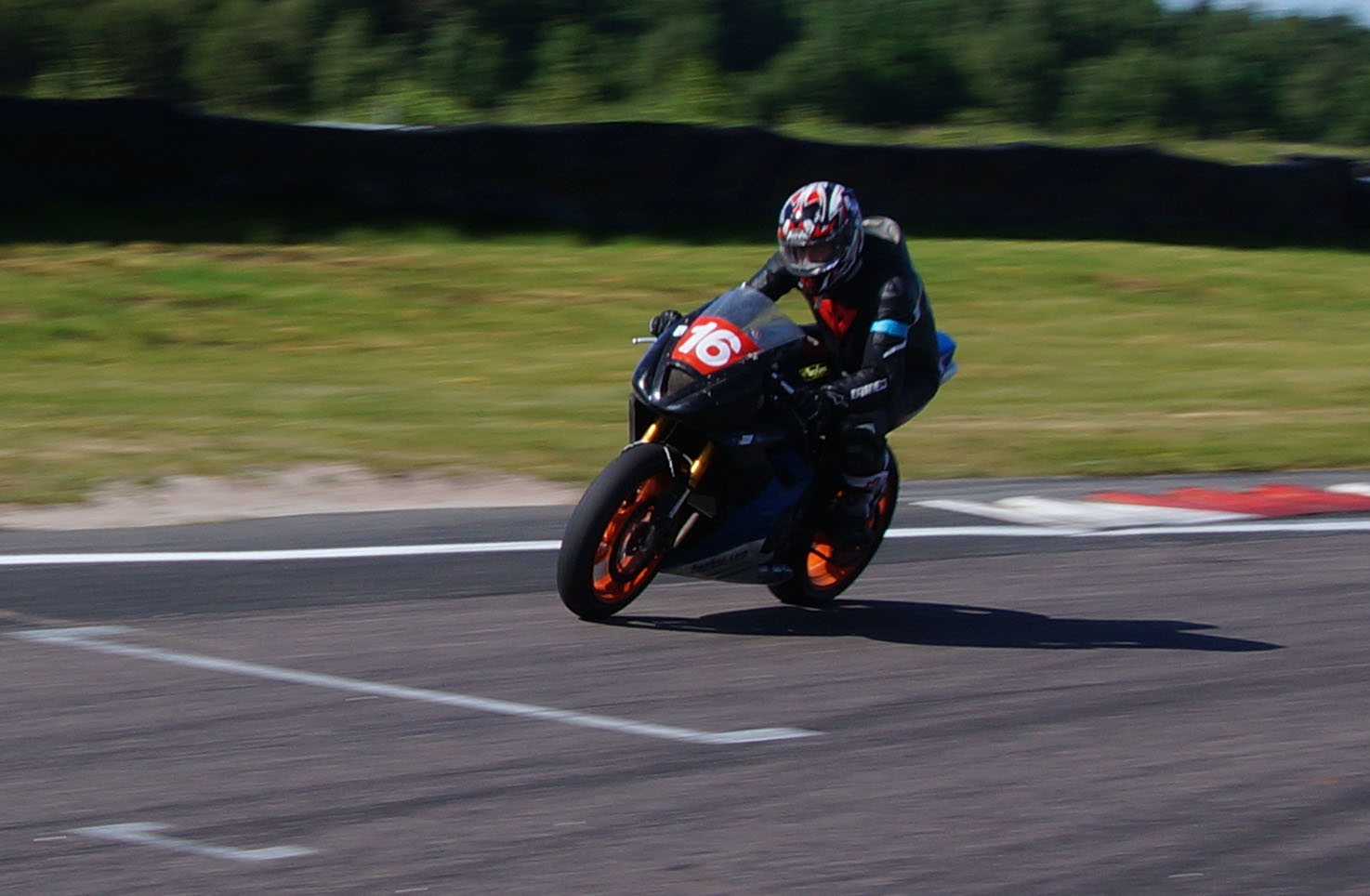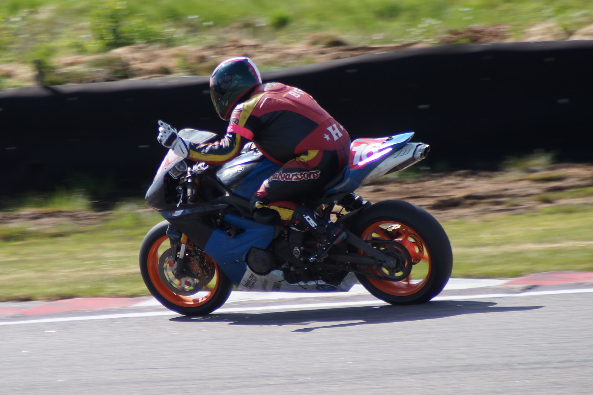 Jonas kører godt med den lille Daytona 675 med 124 hk. De andre 200 hk maskiner suser