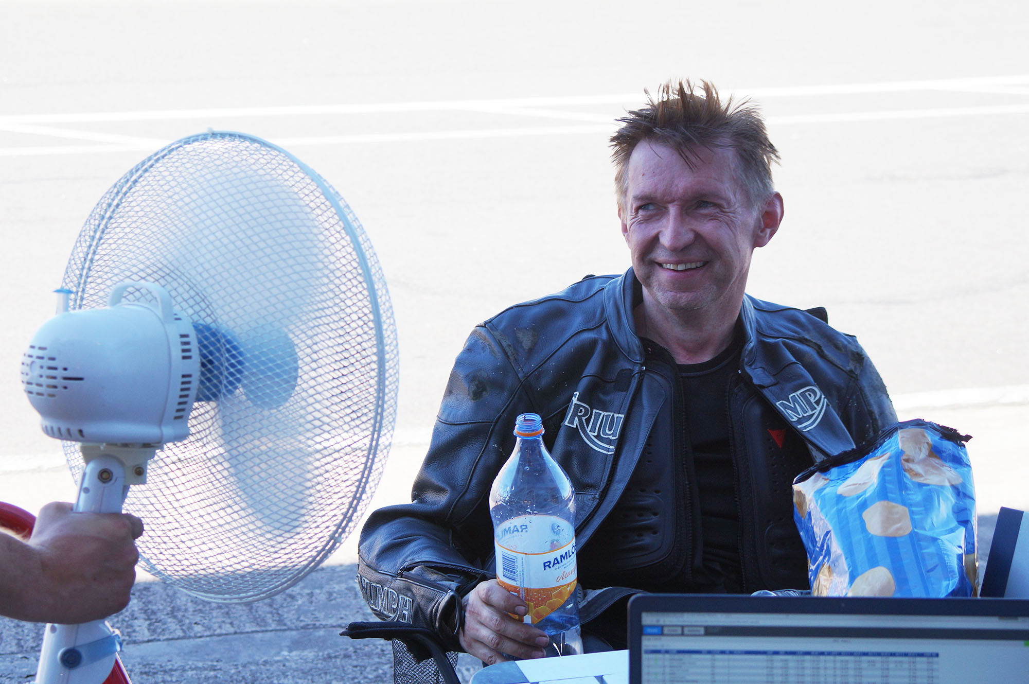 Puha, af med hjelm og handsker. Frem med vand. Må drikke 1 liter vand i timen under løbets