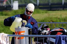 hjælperen er klar med håndklæde for eventuelle dråber (for at undgå stop-and-go straf