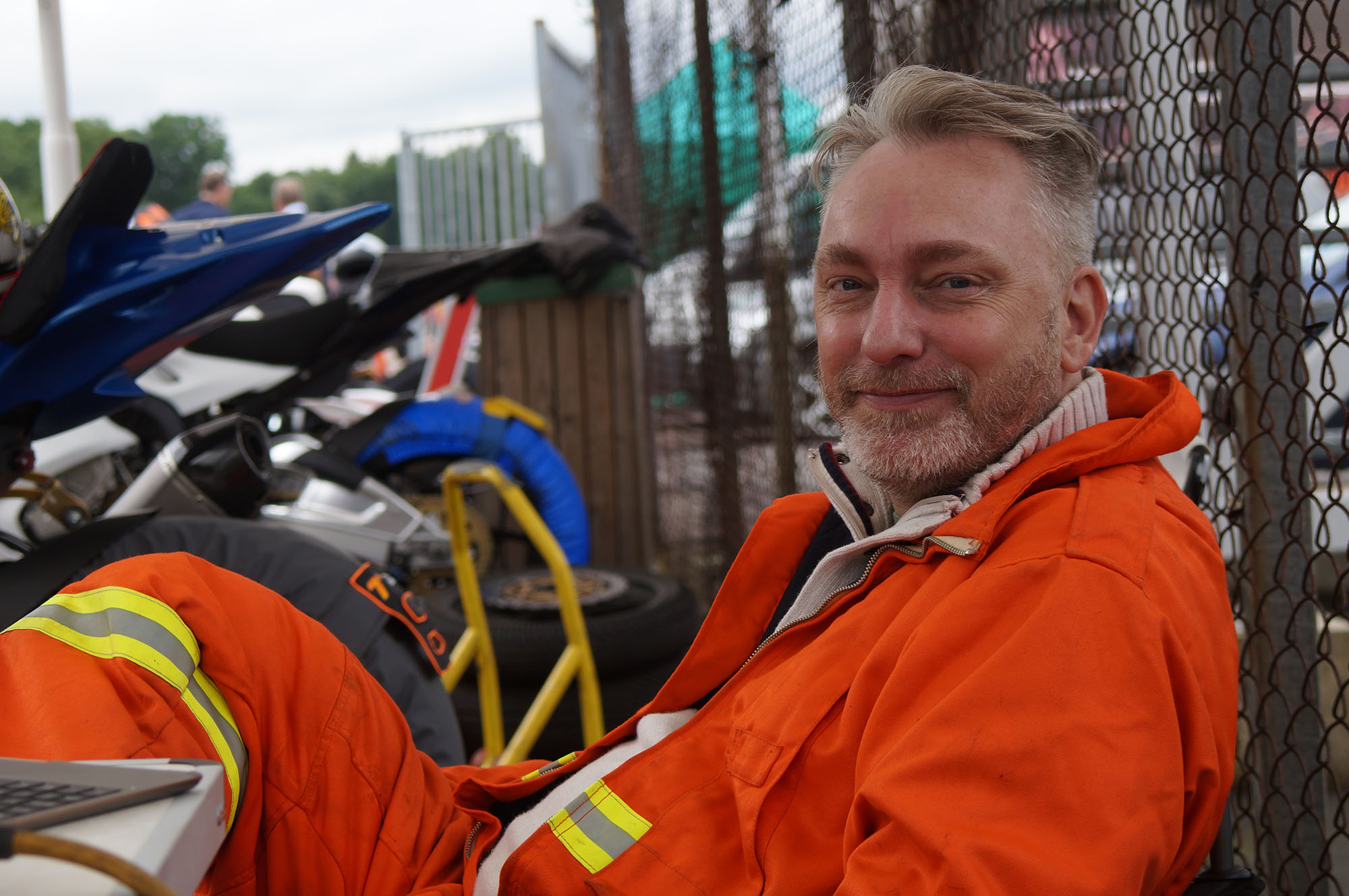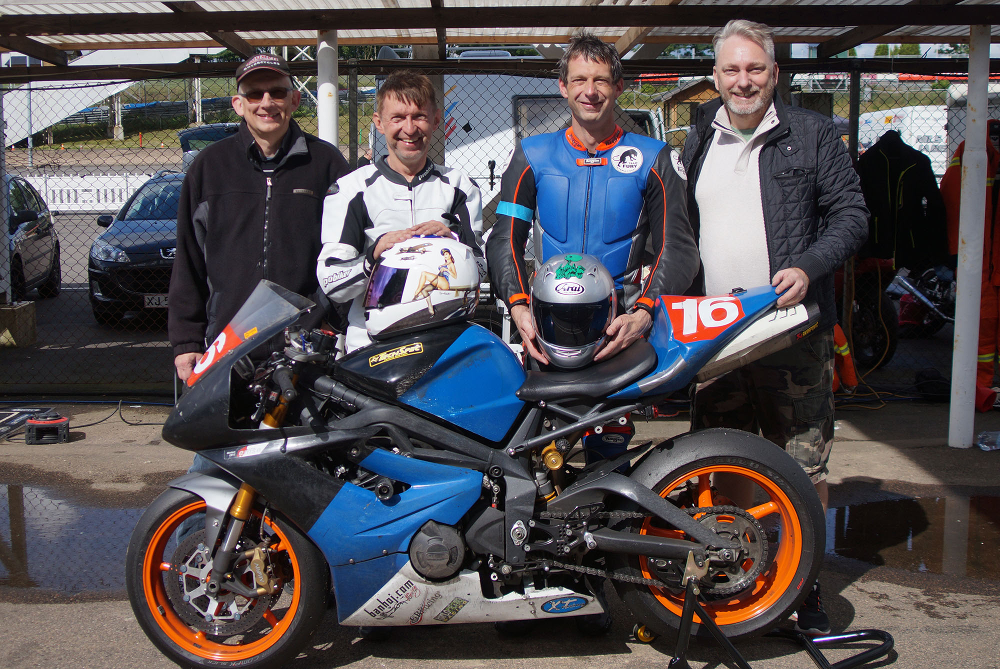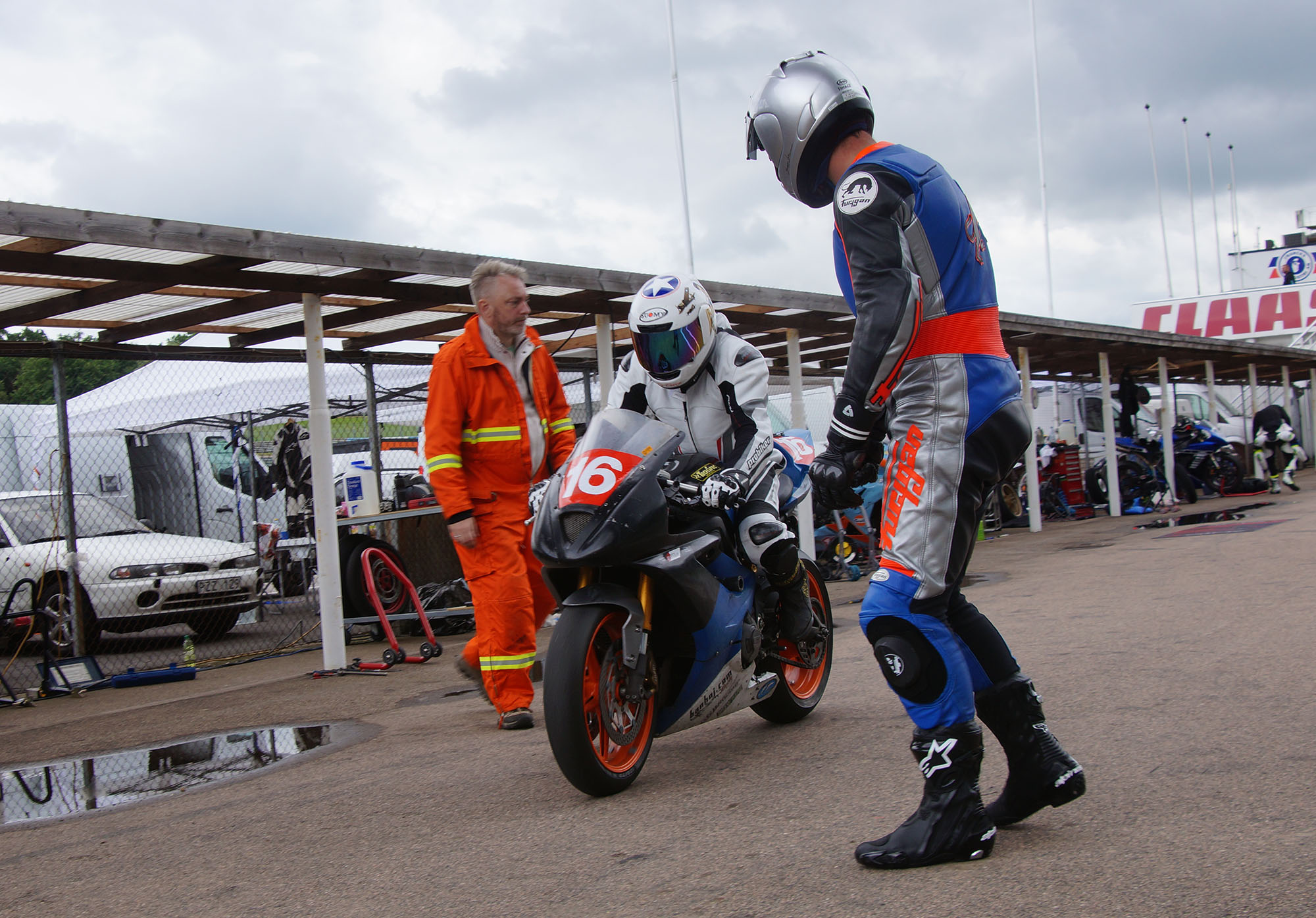 hvor Søren og Palle står klar. Vi får fyldt tanken op, og jeg kører ud på banen til mine