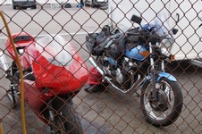pille dækket af og montere regndækket. Og skifte bægge hjul på motorcyklen. Det tager sin tid, men
